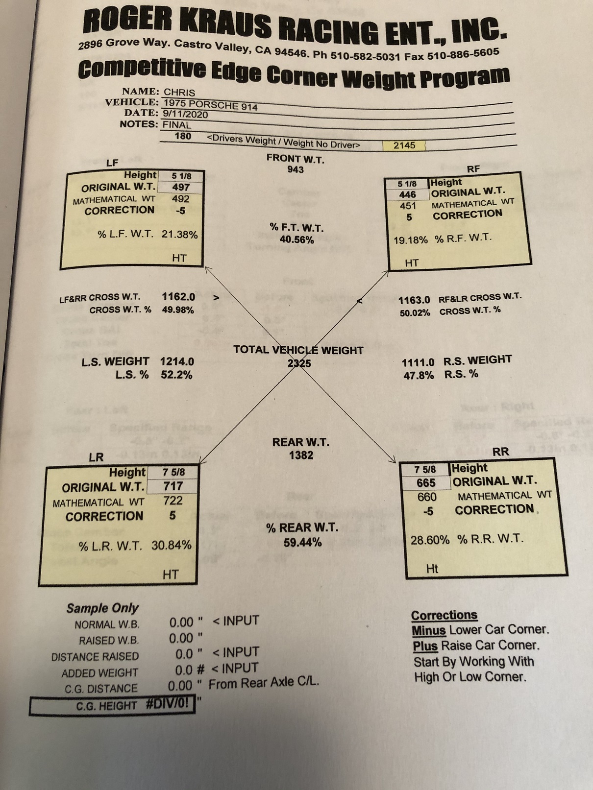 With all the chassis work I did, especially the Tangerine raised rear suspension pickup points, I was a little freaked out that when I took it in, it wouldn't be able to be brought into spec. Well, after a morning at Roger Krause Racing with none other than Brandon Krause doing the work, I'm ecstatic to report that everything worked out wonderfully! Even bump steer checked, measured and set. Overall, things are in the "aggressive street" range. The following items weren't installed at the time: - GT headlight kit/headlight bucket assembiles/headlights - windshield - rear window - passenger seat - targa top - misc. seals In this state, the car weighs in at 2145. I was sure it'd be heavier than that. I'd bet I don't add more than about 100 lbs. putting all the remaining stuff in so with 518 hp, I'm at ~ 4.34 lb/hp. Yikes. But in all, a VERY major milestone. Next, it's off to get the ITBs and ECU some love. Attached thumbnail(s) |