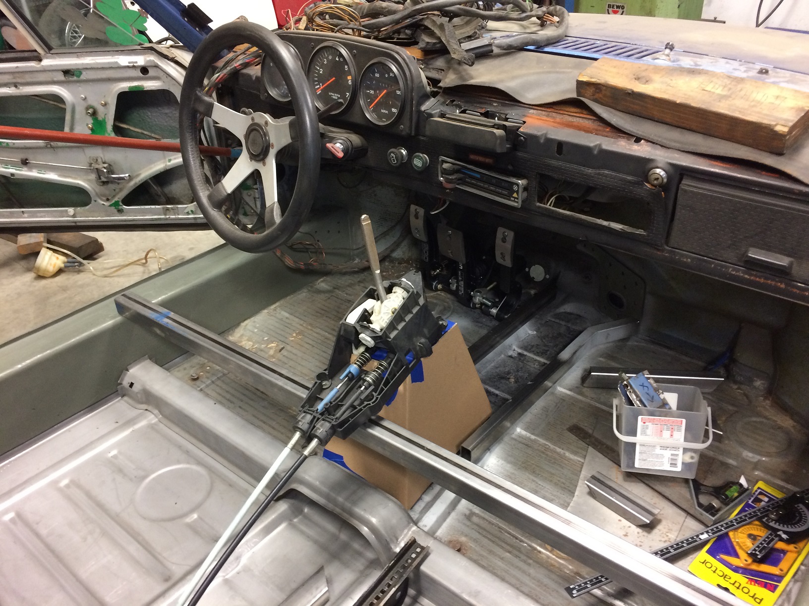 Teaser shot. Where, oh where, do you suppose the exhaust is going to exit the car? Out the top of the trunk, 918 style? (IMG:style_emoticons/default/sunglasses.gif) Through the rear panel? (IMG:style_emoticons/default/idea.gif) Or do I have something else in mind...? (IMG:style_emoticons/default/shades.gif) (If I've shared my plan with you, don't spill the beans, please.) I'll bite... you're going to run them through your custom bulkhead and out behind the rear fenderwells on the side - custom heat plates with pipes will look purty kuhl... (IMG:style_emoticons/default/idea.gif) (IMG:style_emoticons/default/lol-2.gif) (IMG:style_emoticons/default/popcorn[1].gif) |