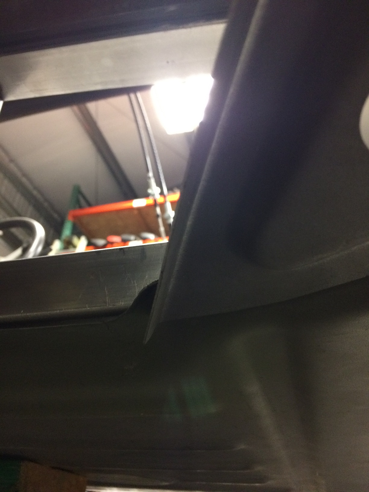 What to do? There were probably a few ways to deal with this but here's what I did. This pic shows all the gaps I have to address. The lines outline where the cross bar lands on the stock floor and you can see that the only contacts are at that raised section at the bottom of the pic. The rear of the bar just barely kisses that raised edge most of the way across but not nearly enough to be secure. Attached thumbnail(s) |
