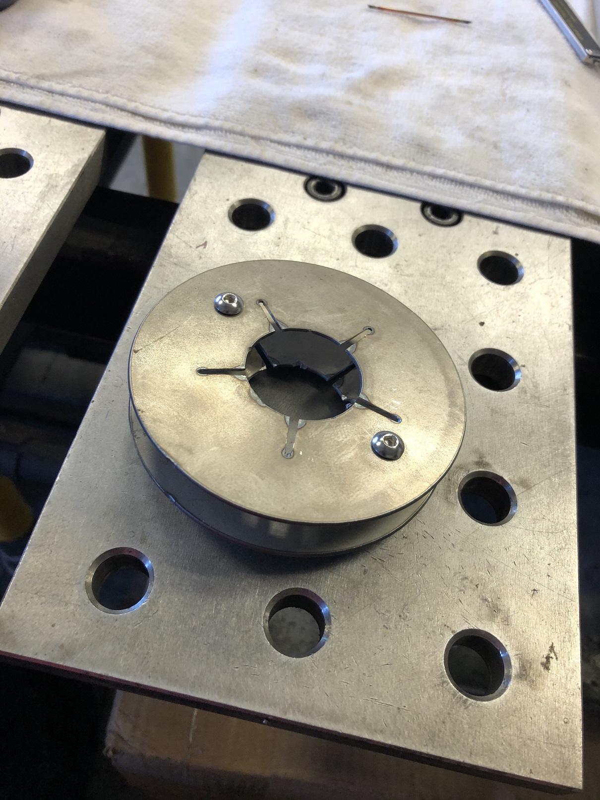 I worked out a little fixture for the exhaust inserts that makes it easy to accurately locate the 5 vanes. Well done. (IMG:style_emoticons/default/beerchug.gif) |