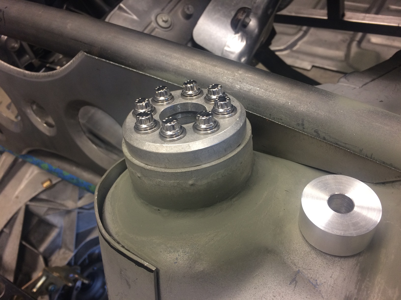 There's no kill like overkill! (IMG:style_emoticons/default/aktion035.gif) So I treated the Tangerine Racing towers to an upgrade to ARP stainless fasteners. I mean, doesn't Foley's stuff deserve the top shelf treatment? (IMG:style_emoticons/default/poke.gif) I'm going to anodize the top piece, too. Black, maybe gold, still TBD on color. And that's the spacer that was fabbed to address the interference that would otherwise occur between the shock top hat and the bottom of the tower extension. Attached thumbnail(s) |