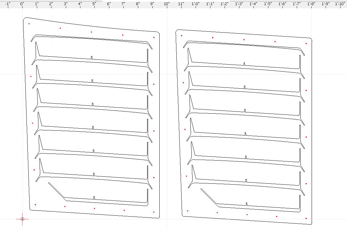 And as @buddyv Robert mentioned, the straights have a bit too much of a "home floor heater vent" look. Well, at least this current version does, IMO. So, how to proceed? Well, I'm going all in on ANGLES! Frankly, it's important to me that I do all I can to honor @Retroracer Tony's original design. (IMG:style_emoticons/default/pray.gif) Plus, I think they fit the vibe of the build. So, I spent a bit of time and worked up a new design. The key changes this time are: - vents went from 45 to 60 degrees - scaled the vents down to make room for a 7th vent (nature abhors even #s!) - incorporated the "bend area" design from the straight version IMO, this last point lends a more finished look to the final product. Compare the bend areas and you'll see that the current angle design is simply twisting a small area that I worry will crack at some point. The new approach leverages what I've seen on the commercially available vent products. Not only does this seem a safer way to do the bend, it also means the upper edge of the vent moves outward, causing the top corner radii to finish proud of the inner edge of the frame. It just looks more "finished" to me. Pics of the real one on the car in the next day or so. And if you're asking yourselves "when will this silliness end?", know that I'm wondering the same thing. (IMG:style_emoticons/default/happy11.gif) Attached image(s)
