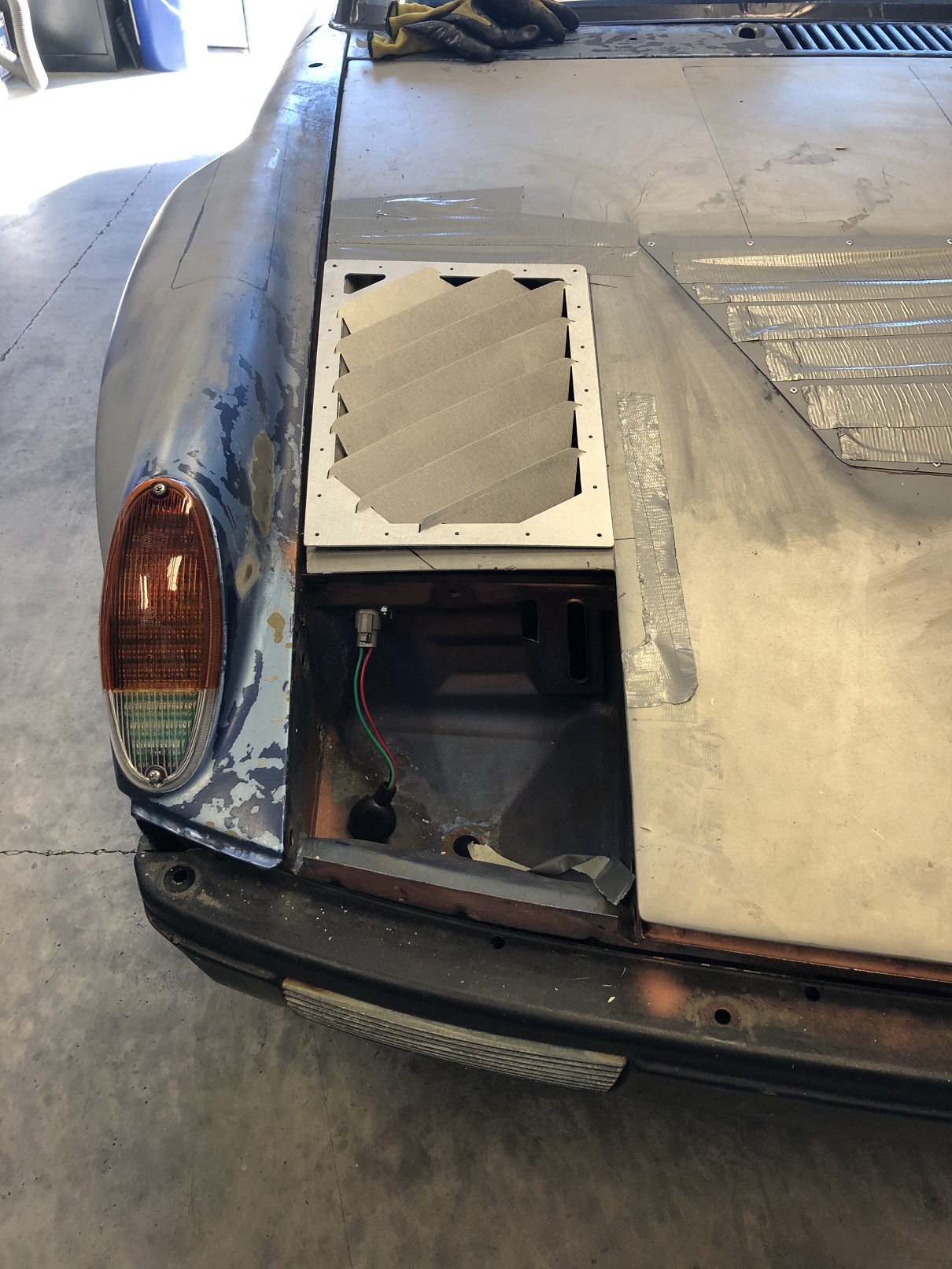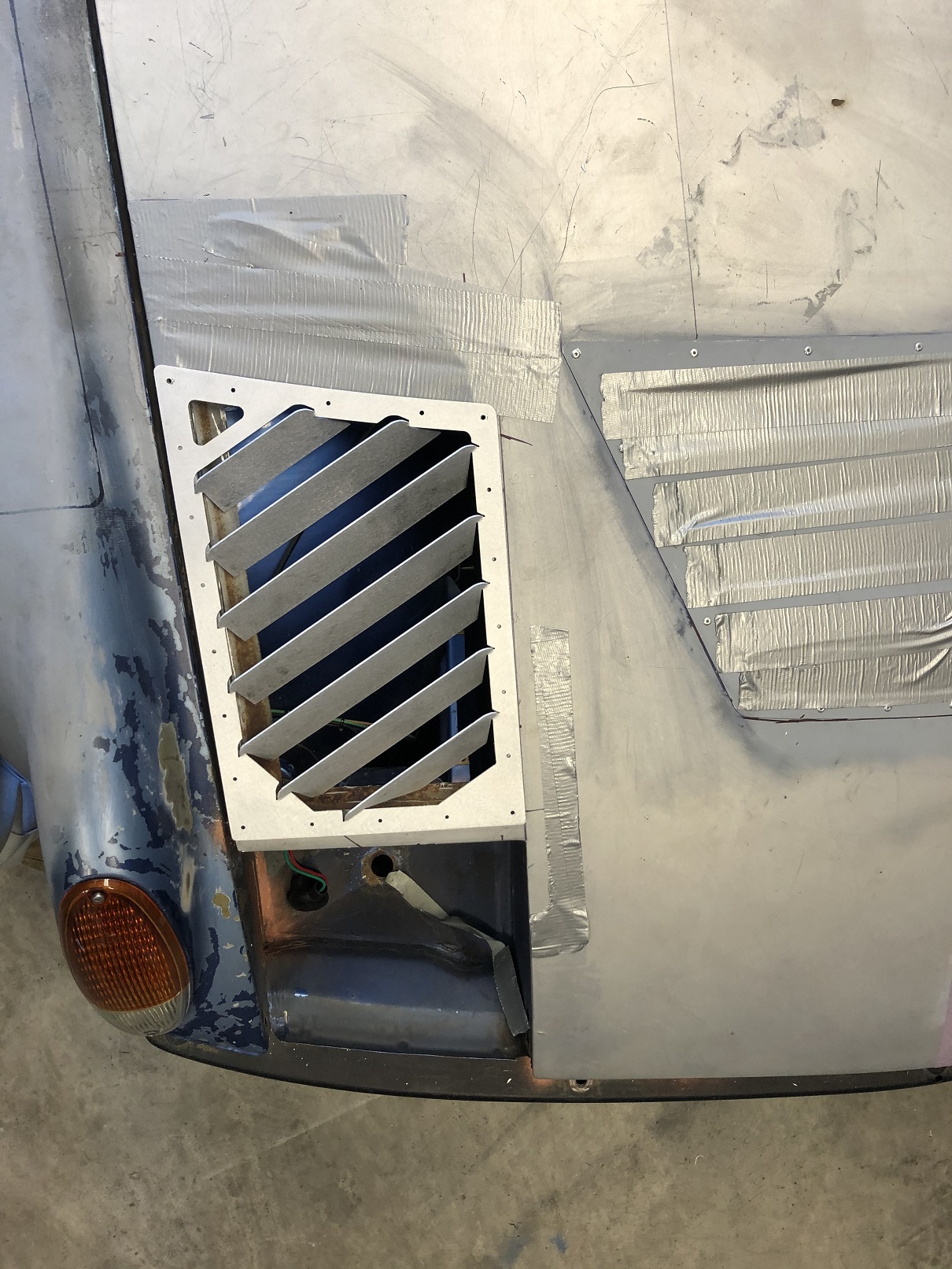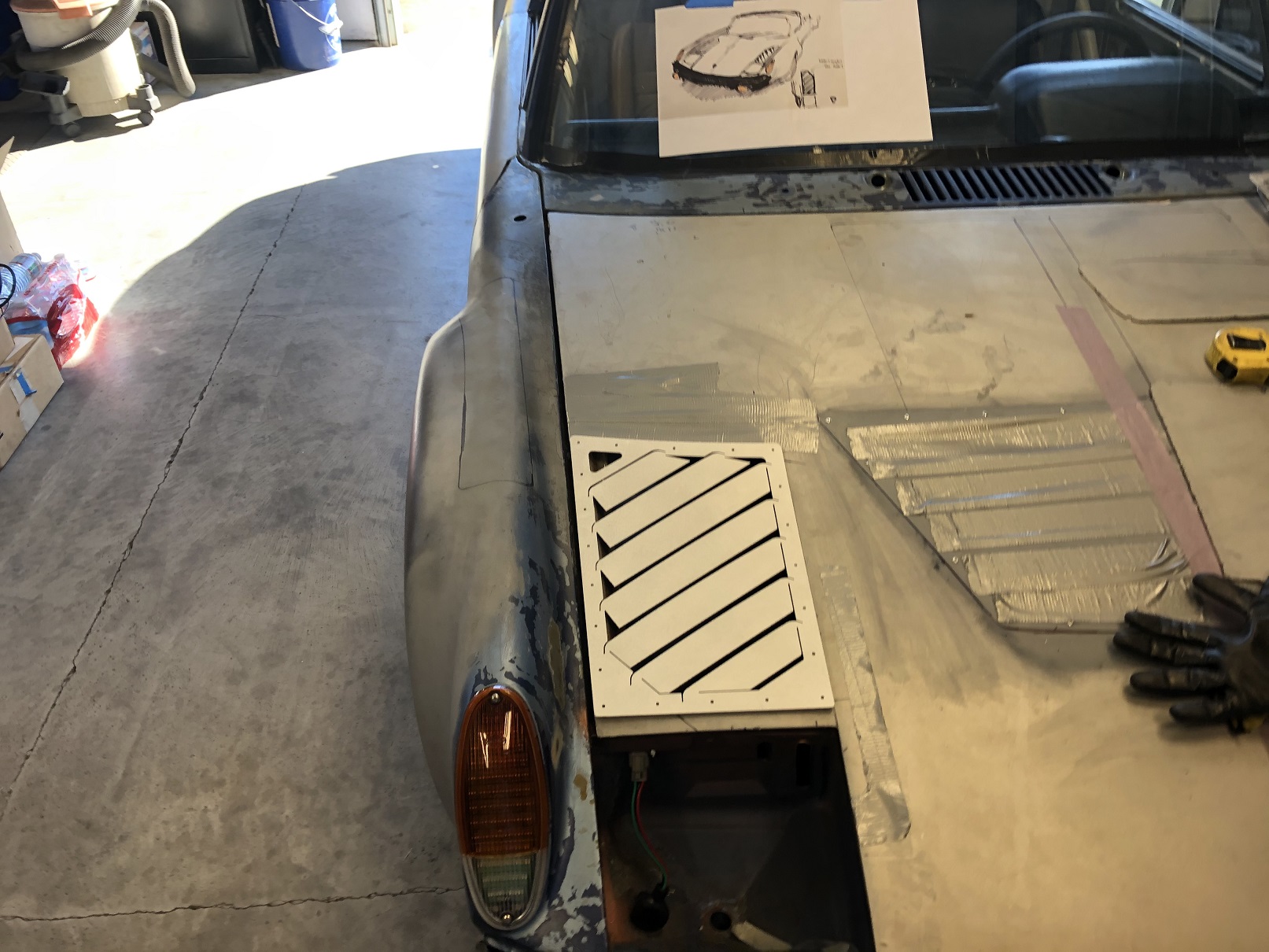 The issue for me is that seems like too big an area to just leave plain. Here it is with nothing and on the right, with a little bit of a treatment to lessen the visual weight of the plain corner. I spoke with Tony @Retroracer and we agreed that this right hand version would be a good next attempt. Tony reminded me that my yarn test showed the majority of the airflow is at the rear of the vent so opening up that area makes sense. And from a design perspective, if anyone were to notice, the solid area is now a dimensional match to the other corners. I think before I build another version, I'll paint the headlight eyebrow, cover and current vent black and see how that changes the overall look. Onward. Attached image(s)