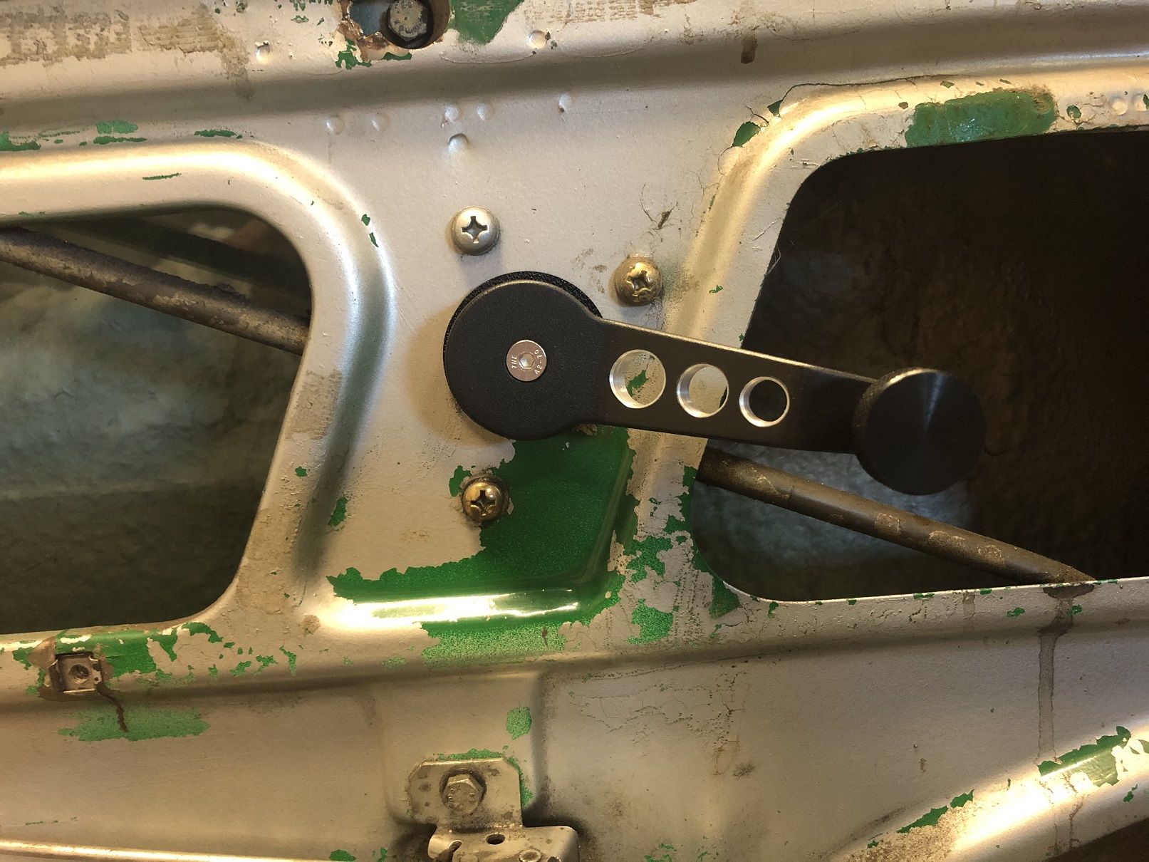 After: GoWesty offset window winders that were treated to some graduated hole lightness, along with a touch of countersink. And yes, the holes were purposely milled perpendicular to the arm, not the mounting base. The goal was to try and sorta match the seats' grommet look. Parallel to the base would have left an oval look. I'm happy with how they turned out. Just imagine how nice they'll look with some zippy door cards! Attached thumbnail(s) |