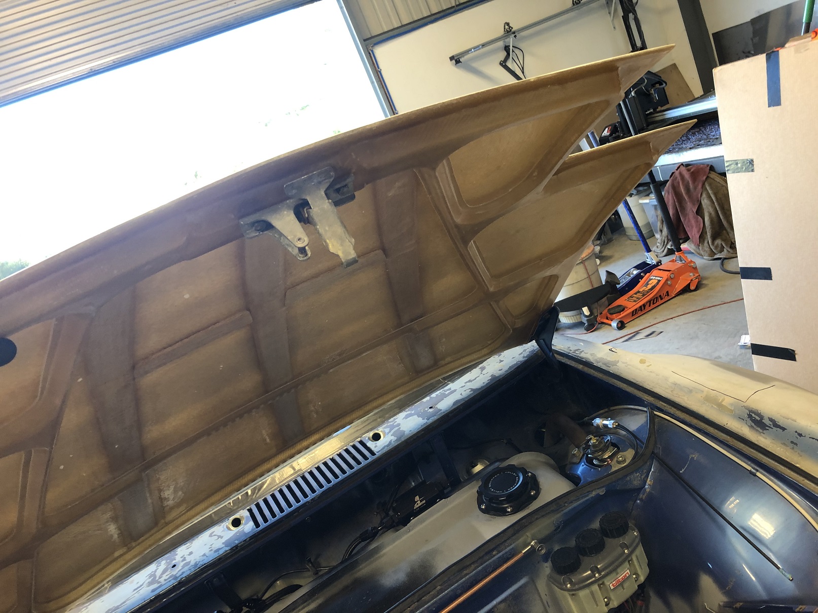 I like the engine lid latching set up you came up with. It is simple and looks good. That front lid looks pretty dang good right out of the box! Does it need much work to meet your standards? @Krieger Andy, I bought the Getty hood and trunk lid and have to say, the fit and finish are really good. There are a couple spots along the edges that could use a little fine tuning but not much. I'd bet that all these will need is some high-build primer and a quick sand and they'll be good to go. Stop by and see what you think. |