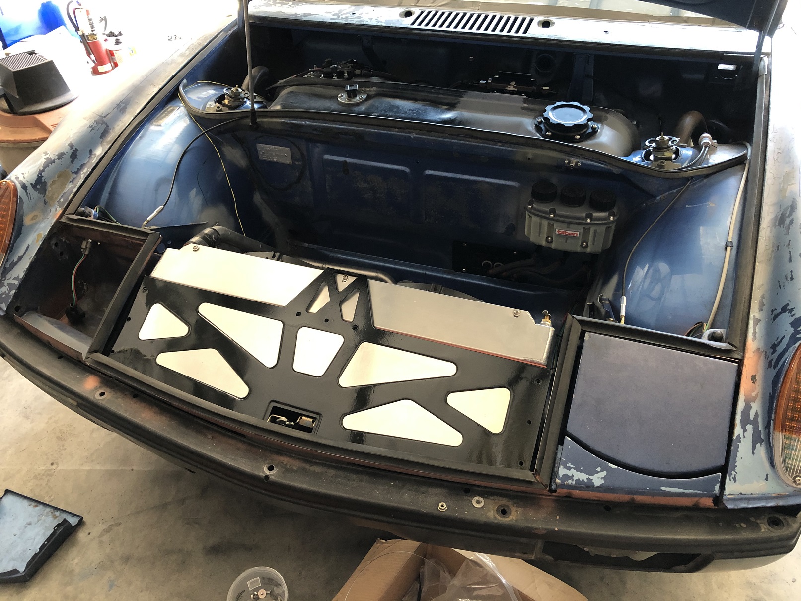 I had the old version of the radiator shroud top. This was going to get carbon inserts but I thought I'd see what it looked like with a quick rattle can paint job and aluminum inserts. Not bad, but the paint looks maybe a bit too glossy. Still noodling on the final look I want.