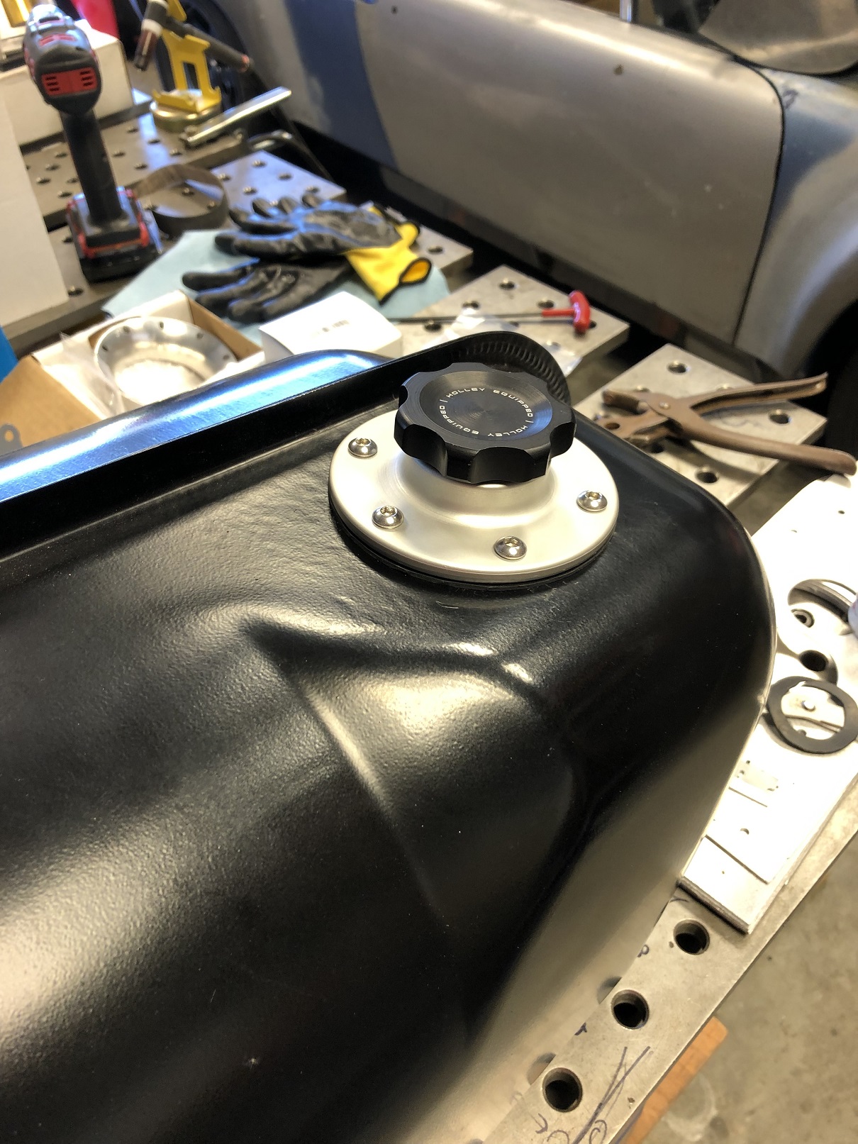 Chris, That Holley fill cap, is it located in the same place as the original Porsche fill cap? Are you going to add a vent and expansion tank? What are you doing for the fuel pump and its location? I'm currently adding a small Holley fill cap, but in the same position as you did with your original large flat fill cap. The tank surface is not very flat in this area, so I'm not sure how to get a good seal with the Holley o-ring. I'll probably machine a steel split ring to back it up. In the stock fill cap location, I'm installing a FiTech drop in fuel pump module with an adapter ring for a bolt in configuration (no welding). I'll shoot some photos to share. Andys @andys I tried that same, small Holley cap set up but REALLY didn't like how small the base was. I ended up buying a cap assembly from BAM. Here's the link on Amazon. Looks out of stock now but... https://www.amazon.com/Aluminum-Bolt-Tank-F...d/dp/B019H6M8YI The good news is the base uses the same thread pitch so the Holley cap swaps right in and you get the super cool, SEMA winning, silver/black contrast! (IMG:style_emoticons/default/lol-2.gif)  |