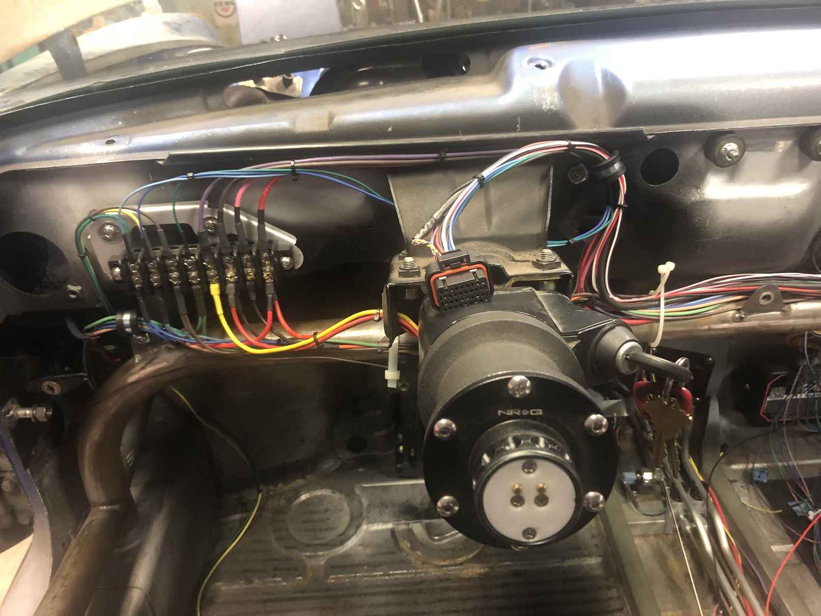 Today, it's wiring the Holley dash. The CAN technology is SOOOO nice in that everything the ECU monitors can be displayed on the dash via a couple wires. No more wires running to the dash from every sensor!