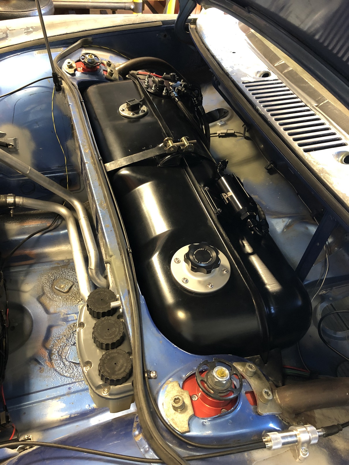 Chris, That Holley fill cap, is it located in the same place as the original Porsche fill cap? Are you going to add a vent and expansion tank? What are you doing for the fuel pump and its location? I'm currently adding a small Holley fill cap, but in the same position as you did with your original large flat fill cap. The tank surface is not very flat in this area, so I'm not sure how to get a good seal with the Holley o-ring. I'll probably machine a steel split ring to back it up. In the stock fill cap location, I'm installing a FiTech drop in fuel pump module with an adapter ring for a bolt in configuration (no welding). I'll shoot some photos to share. Andys @andys I tried that same, small Holley cap set up but REALLY didn't like how small the base was. I ended up buying a cap assembly from BAM. Here's the link on Amazon. Looks out of stock now but... https://www.amazon.com/Aluminum-Bolt-Tank-F...d/dp/B019H6M8YI The good news is the base uses the same thread pitch so the Holley cap swaps right in and you get the super cool, SEMA winning, silver/black contrast! (IMG:style_emoticons/default/lol-2.gif) Agreed, the small base is a bit flimsy. Since the larger one you used is NA, I'll go with the small one for now. Andys  |