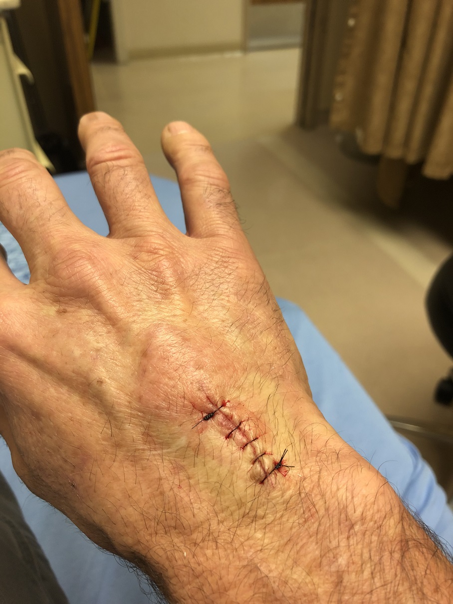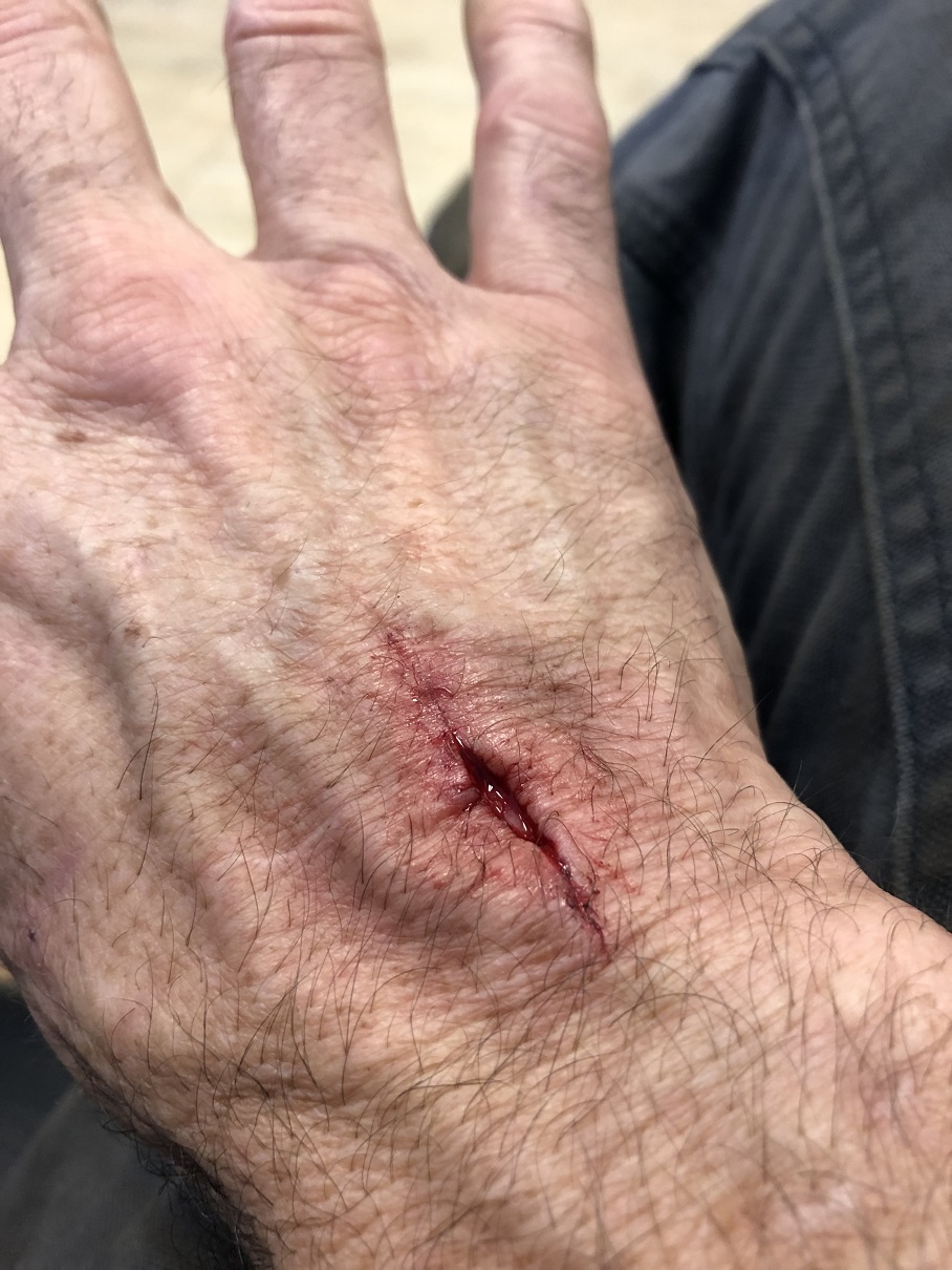 POTENTIAL GORY PIC ALERT!!! On the other hand (literally! (IMG:style_emoticons/default/lol-2.gif) ), you all forgot to wish me well on not being injured! This was RacerBenz related. As I was working away on it, one of the "in-place but not yet tacked in" roll cage tubes fell out of position and the wonderfully mitered (read "sharp") end landed smack on my hand. The fun part was when I moved my fingers, all of which thankfully still work, I could see one of the tendons moving back and forth. That's when I decided I should sit down for a a bit before heading to the ER. Virtually no blood but man did I get light headed. In the end, it was a quick stitch job and I was back in the shop this afternoon. Anyway, another reminder that we need to do all we can to be safety minded. So you all be careful out there in your shops! Attached thumbnail(s) |