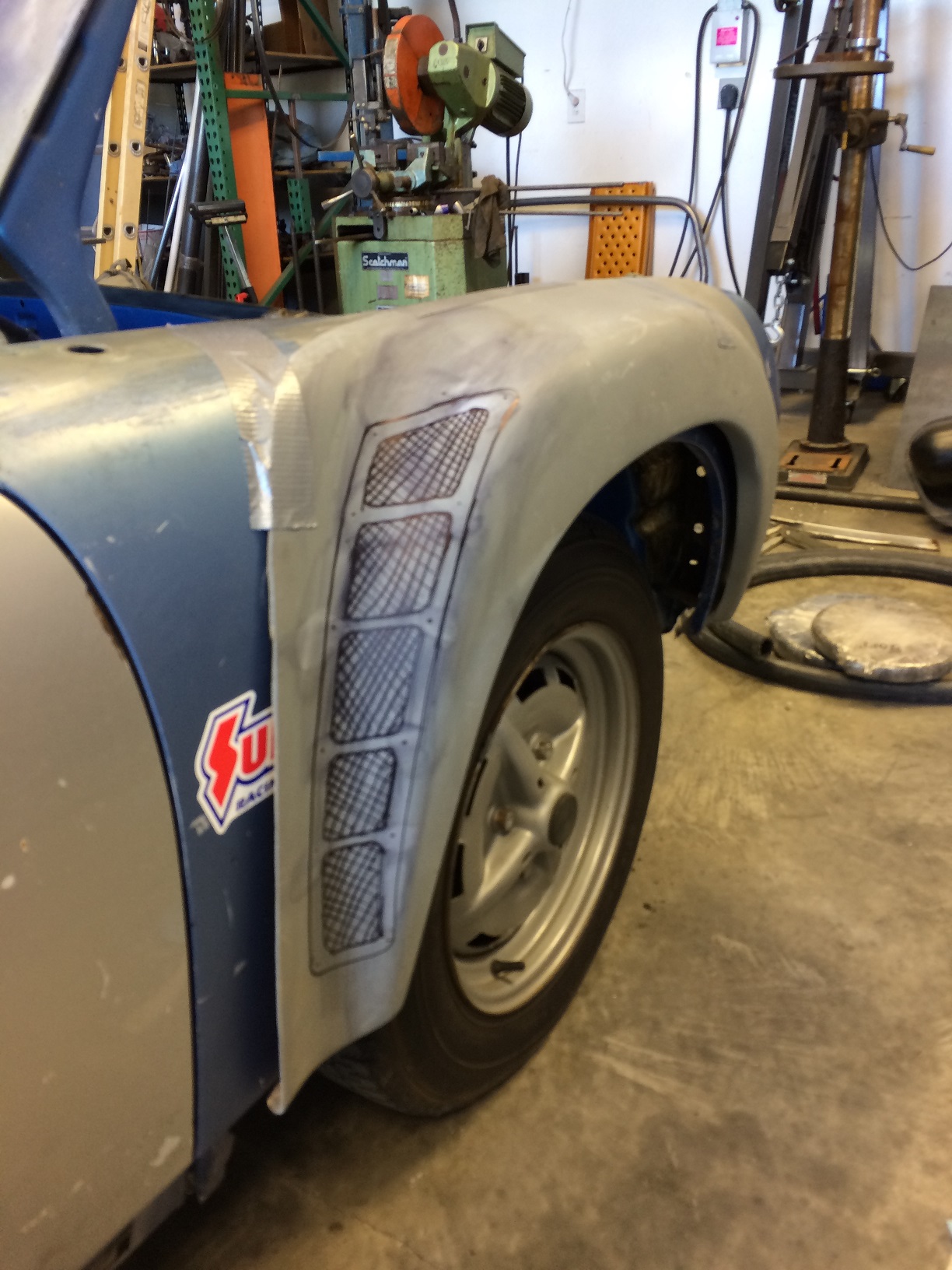 First, something totally unnecessary that will only distract, add complexity and additional time to the build... Sounds about right to me! I've decided to vent the radiator through the fenders and NOT do a vent in the hood (at least for now) and I'd like to do something to help with the removal of hot air from under the fenders. I just love the fender vents in the GT3 RS so I hung a crap glass flare on the front and started drawing. In the end, this will be added to the steel flares - again, this glass flare was just for idea mock up. I'm thinking an aluminum frame with mesh. Ideally, I'll relieve the opening in the fender so the frame sits flush with the fender. This was totally free handed (like you can't tell!). I didn't measure anything so yes, the openings are all different heights. That'll get corrected in the final design. Attached thumbnail(s) |