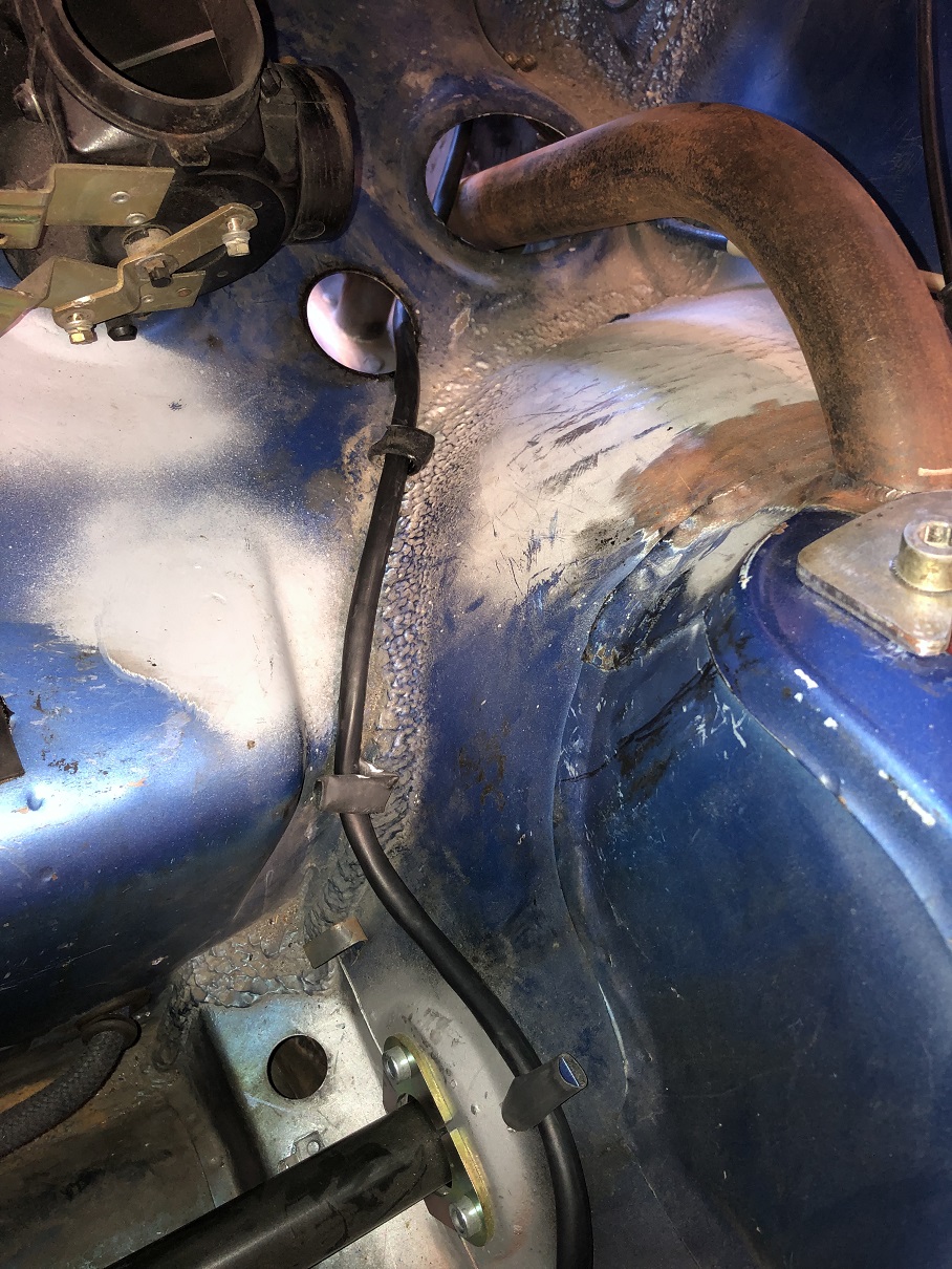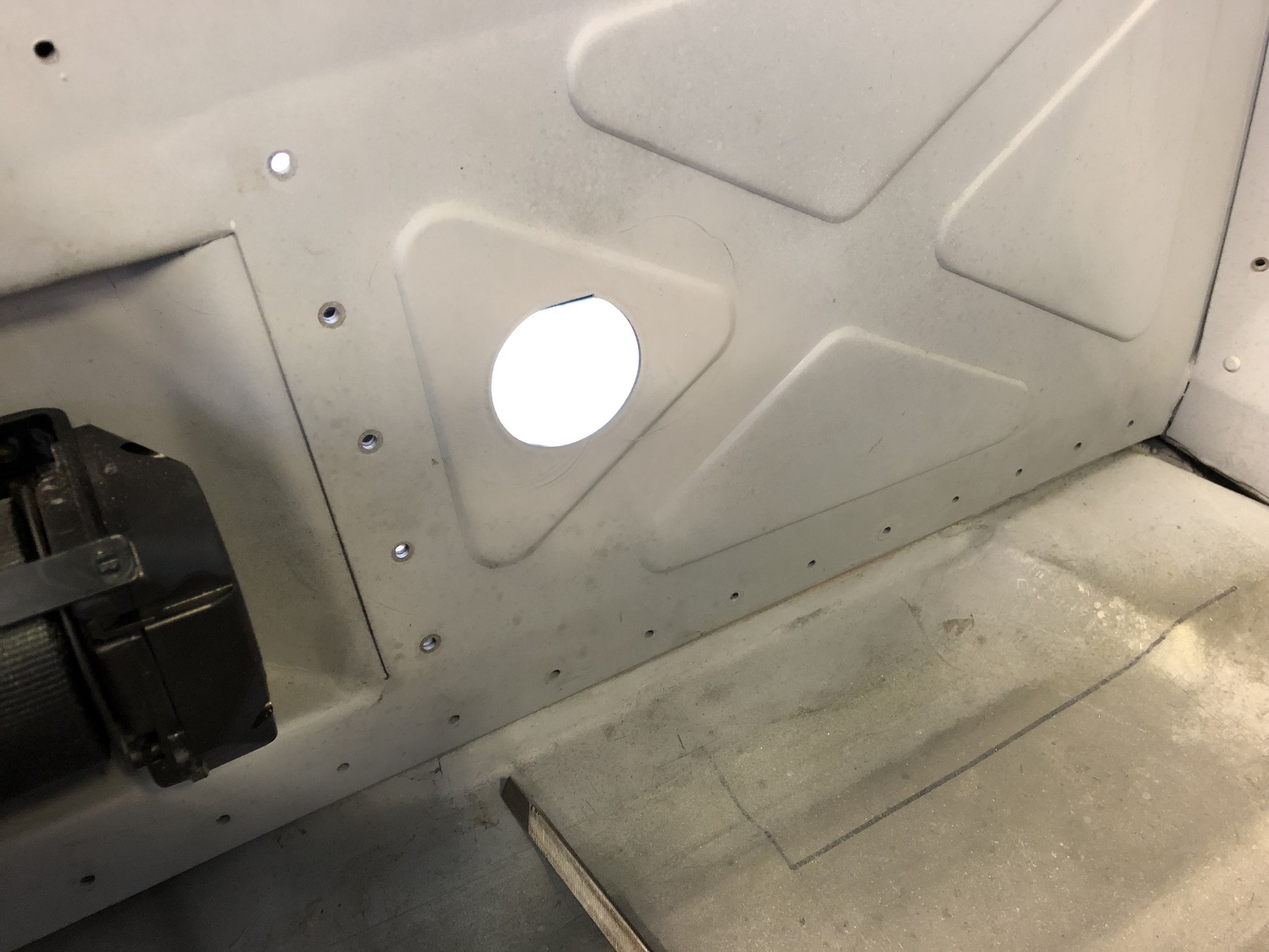 Well, it's done. My fire wall has a hole in it. Measured a lot, used a 1.5" RotaBroach hole cutter. Great tool. Highly recommended for cutting holes in sheet.