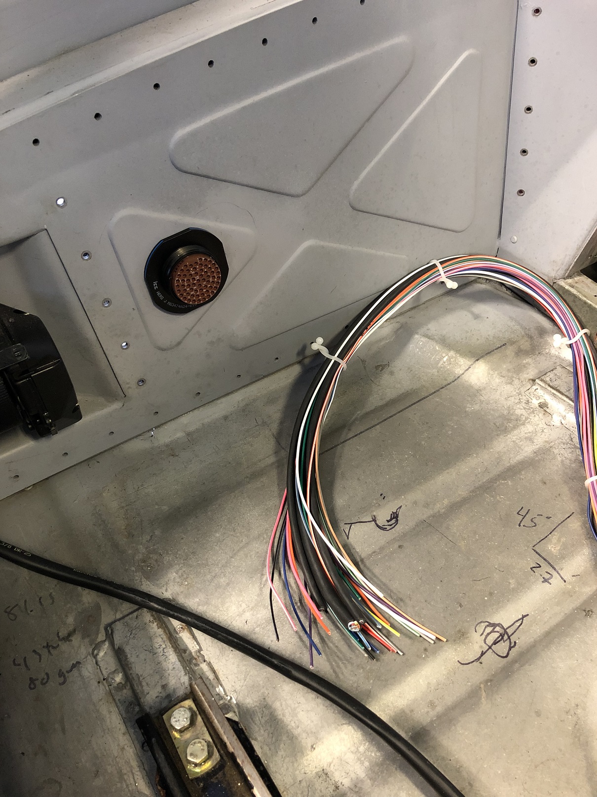 That said, the bulkhead connector needs a hole that's just over 1.5" and has a flat spot at the top that helps prevent the connector from spinning in the hole - the connector has a flat spot, too. Anyway, I cut the 1.5" hole, used a file to create the needed flat spot then carefully opened up the hole with a barrel sander attachment on a pneumatic right angle grinder. Open the hole but keep it flat at the top... (IMG:style_emoticons/default/wacko.gif) It worked! I aged 3 years doing it, but it worked. Here's the hole and the connector in place, along with a brand new ECU harness that I chopped to rough length. This had better work! Attached thumbnail(s) |