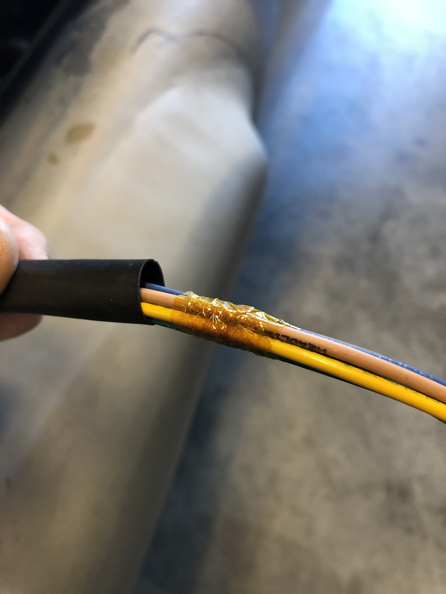 First, get the wires nice and tidily organized. There's a product called Kapton tape that works wonders. It's very thin yet incredibly strong and leaves no residue when/if you need to remove it. You can see some there in various places on the exposed wires. Once organized, measure the harness for diameter and use the closest sized DR-25 heat shrink. In this case, things measured out to use 3/8". Get the DR-25 over the wires. This is eased greatly by using isopropyl alcohol. I had none. (IMG:style_emoticons/default/wacko.gif) (IMG:style_emoticons/default/blink.gif) It took a bit but I got it done. Attached thumbnail(s) |