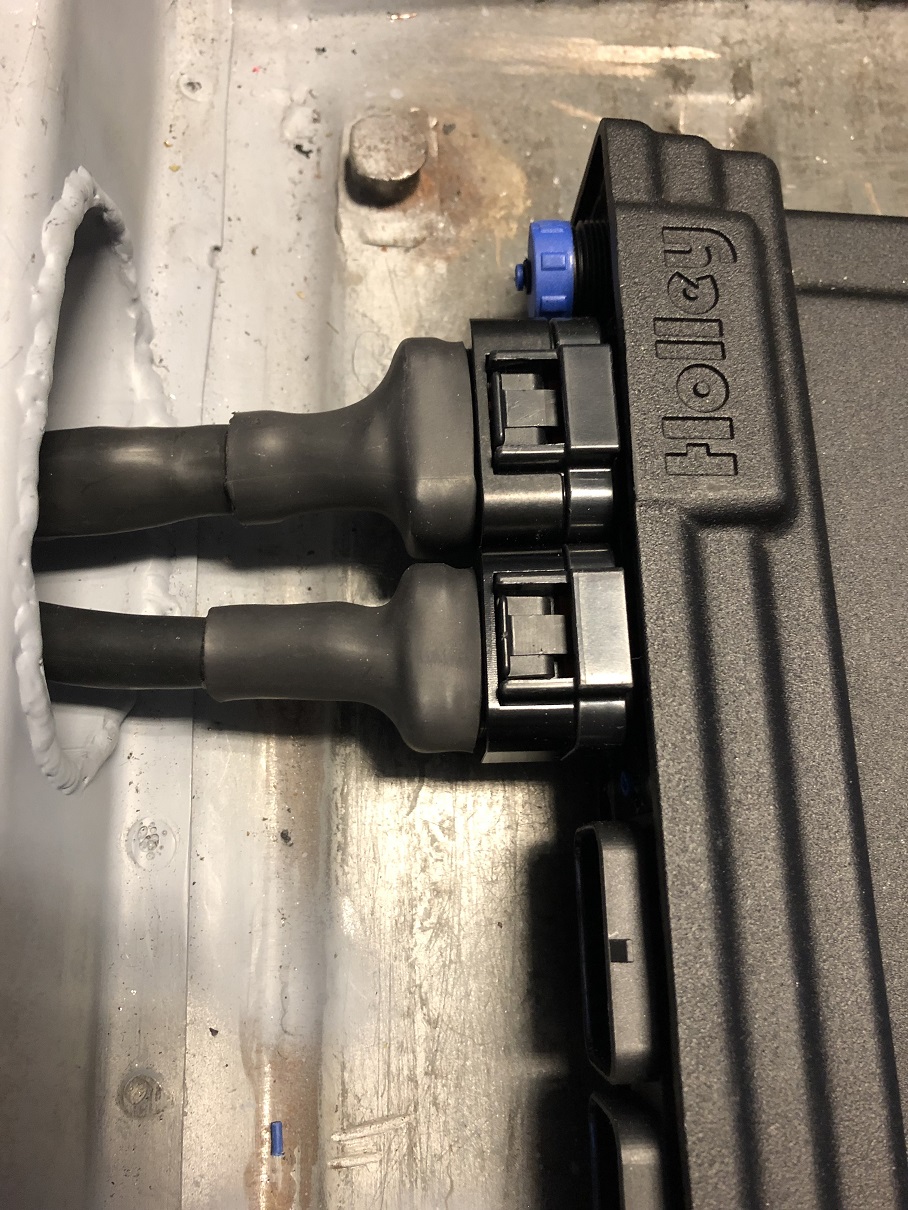 The Holley engine harness is wrapped with the split nylon covering but has nothing going on right at the connectors. These are the two main plugs for the ECU and you can see it's just wire into the connector. Not bad... but certainly not good enough! (IMG:style_emoticons/default/laugh.gif)