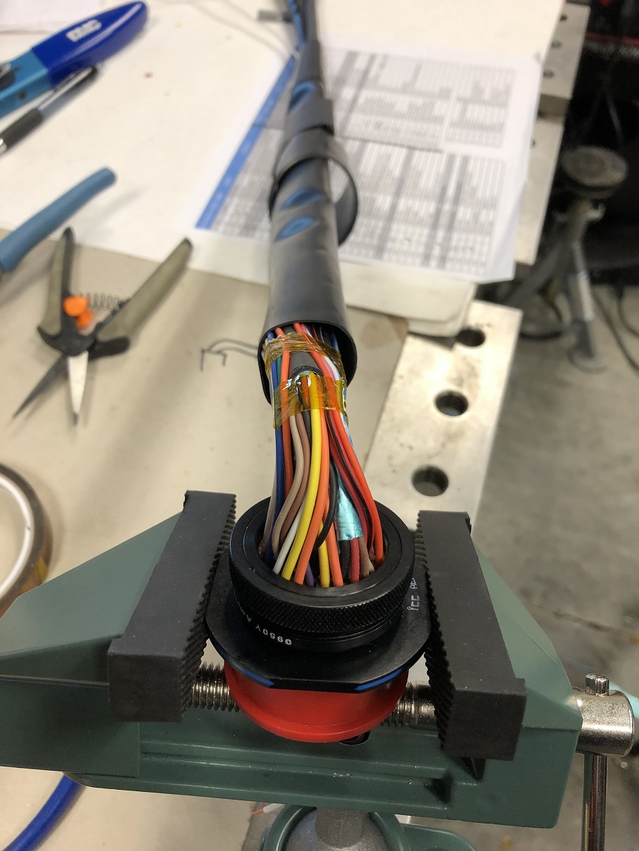 I decided to start with pinning the DBW cable. It's seven conductors plus the shield.