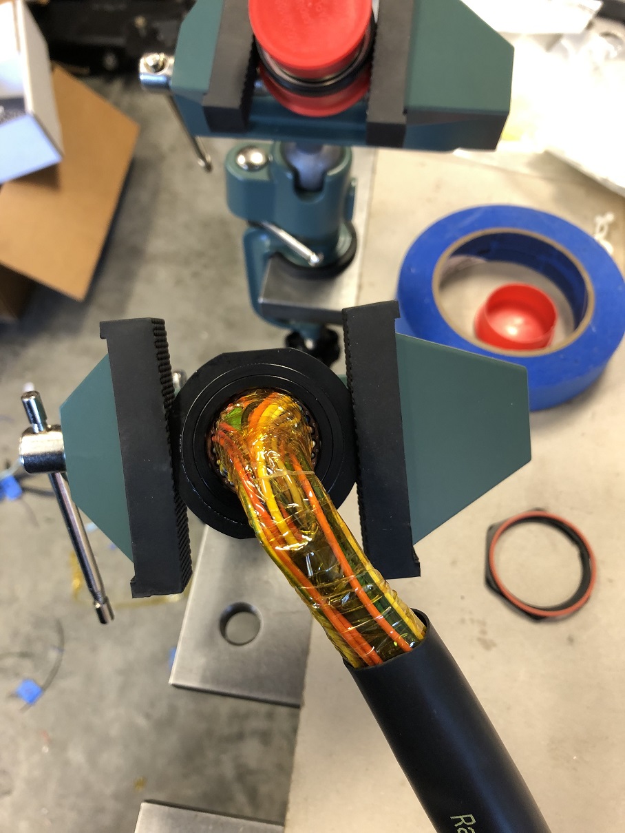 Next, I worked out the angle I wanted the wires to exit the connector and used Kapton tape to secure and support everything. Attached thumbnail(s) |