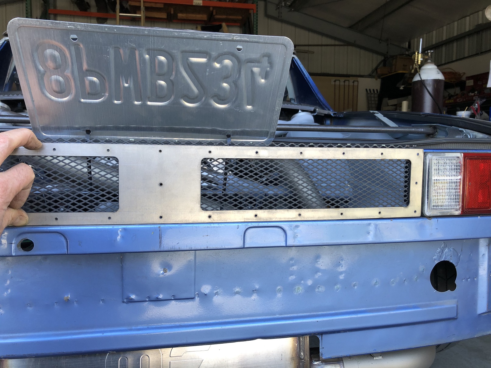Here's pic of the empty panel - to give you a feel for the overall look - and one where I'm just holding things in place to show the effect of the grill. I love the way you can still peek in there and see all the mechanicals - and that it matches the engine grill. Still some trimming to do but you get the idea. Attached thumbnail(s)  |
