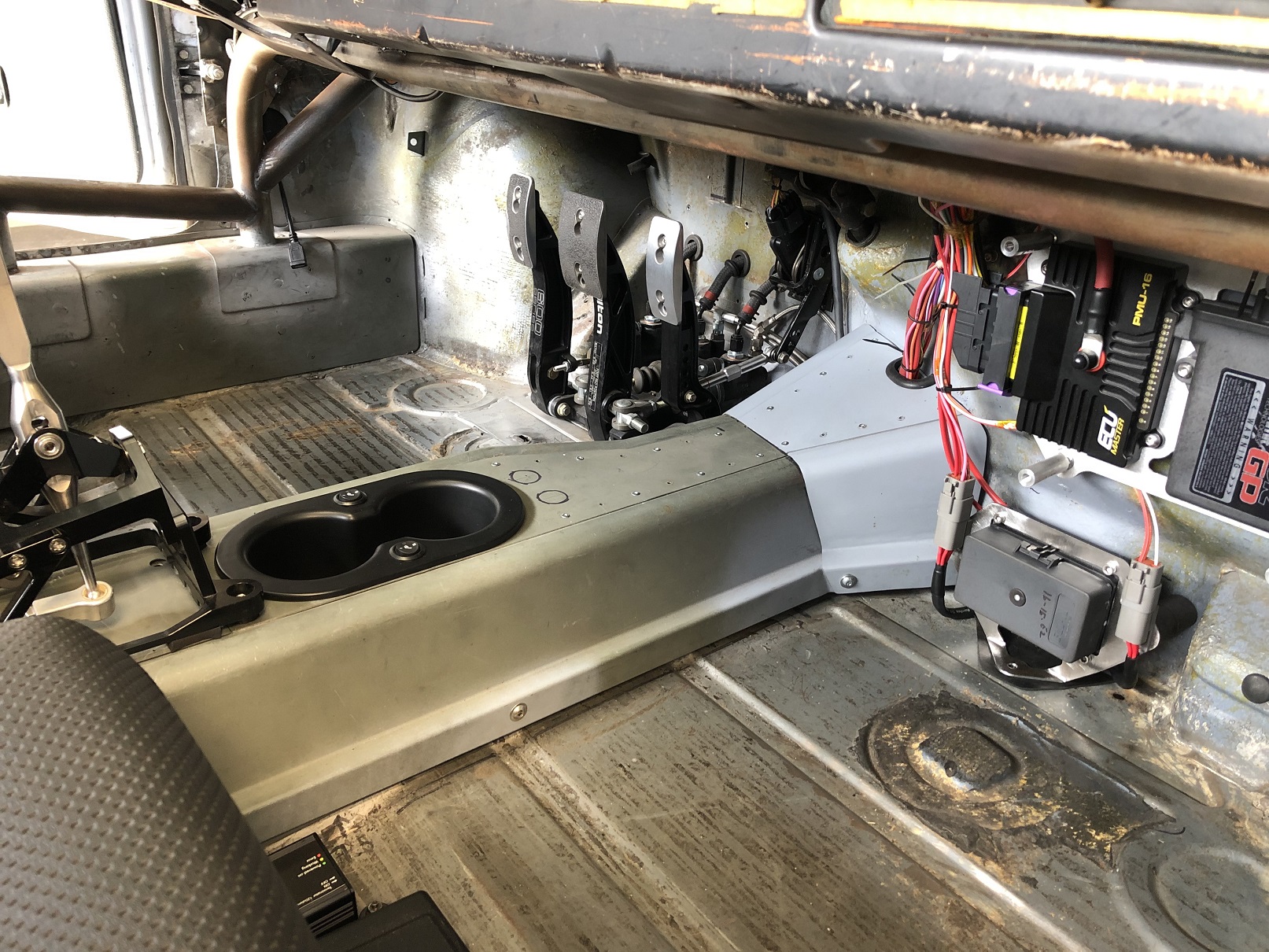 That console area looks fantastic. Mmmm like the Tilton pedal system. So cool Chris.