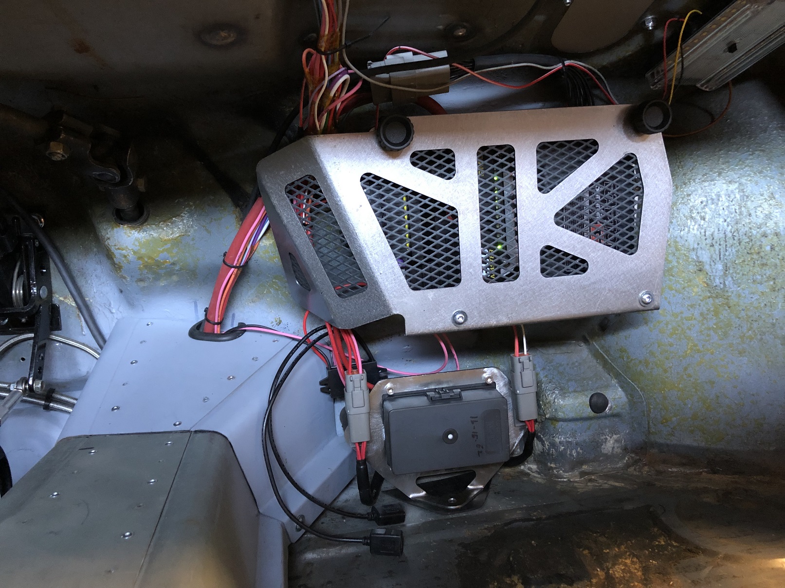 Now that I'm driving it a fair bit, I'm prioritizing improvement of the driving experience. It's been a bit of a rattle trap, all the interior wiring and electronics are exposed, etc. And most importantly, after having a few passengers, as well and having been one, all that exposed stuff is at risk of being bumped or kicked. So after errands, it was back home to work on that.