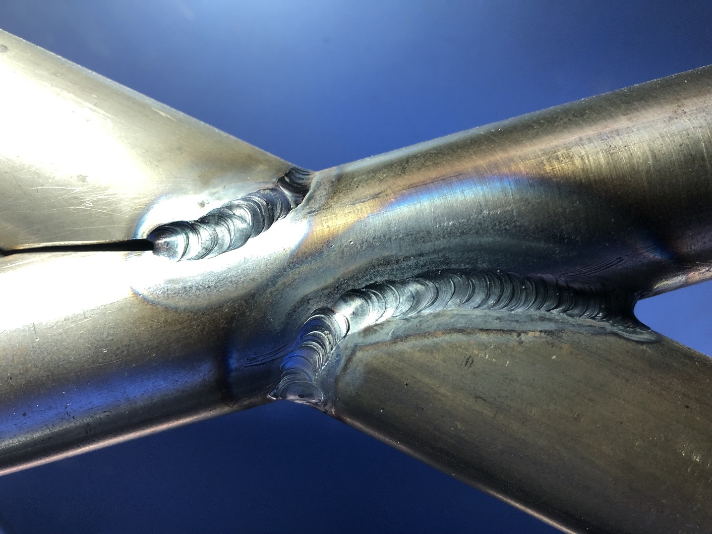 Back to the 914! Today was more "stunt welding". This time, it was the back/underside of the transmission mount X brace. I was laying on a board that was propped up on two tires. I had to wedge myself against the chassis to keep from sliding down the board. But I was able to get comfortable enough to get this result. The lovely blue background is the underside of my trunk. Certainly room for improvement but I feel like I'm getting a reasonable handle on TIGing. Please note that the driving reason I post stuff like this isn't to show off what may be a nice result. It's to point out that only a few years ago, I didn't know how to weld at all. I hope what folks take from this is that if I can do it, you can, too. Give it a try, practice and... Looking good, needs some more filler rod on the bottom one and you might get a cooler weld if you go a little bit faster. But to be honest, because it was upside down its really not bad! A bit of advice i got was work with higher amps faster rather than medium amps slow. |