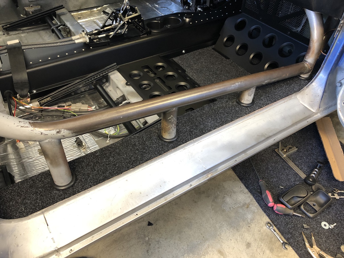 Next it was trimming for the door bar verticals. Note the carpet just folds into place on the outside and the cut line all but disappears.