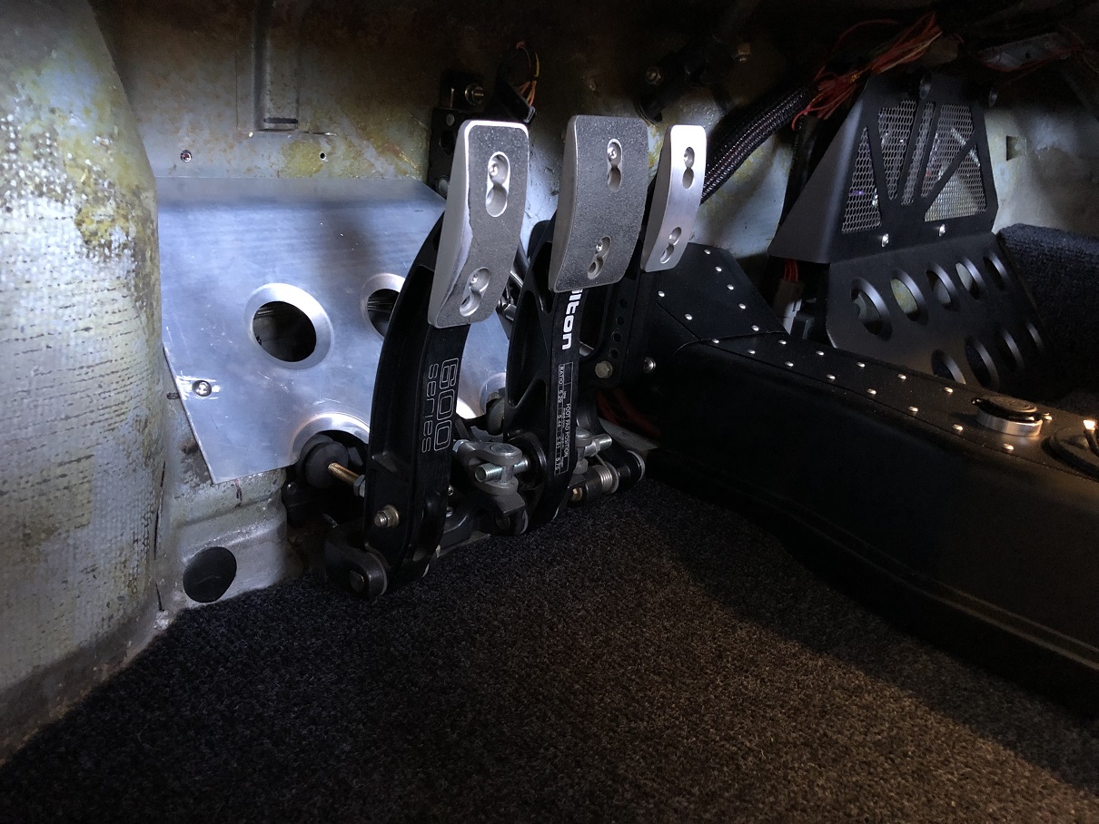 Playing with maybe running a pedal board to hide all the hydraulics. This is a raw V1 to help me understand fit and develop measurements. Assuming I like it, I'll get it into CAD and plasma cut the panel.