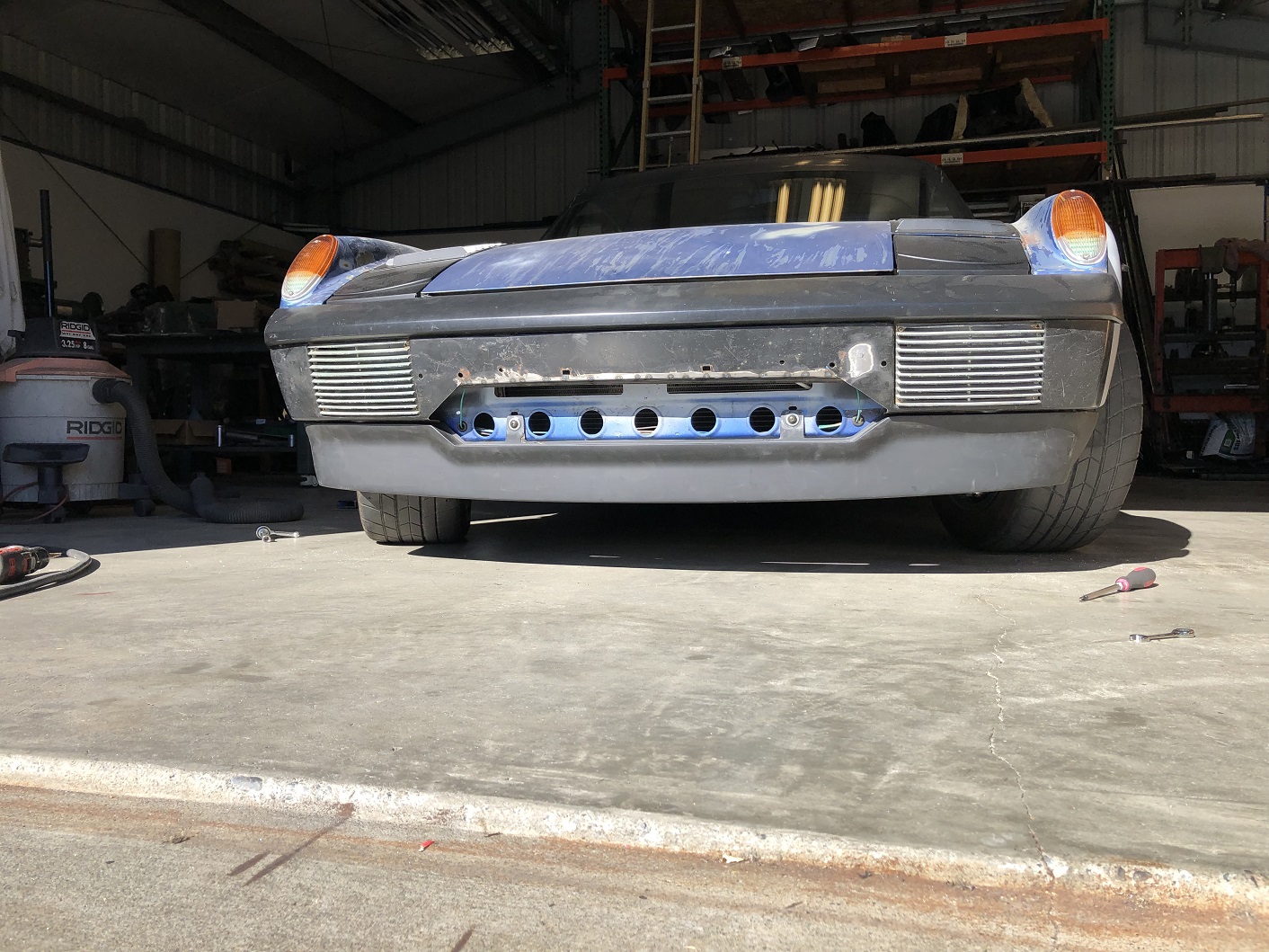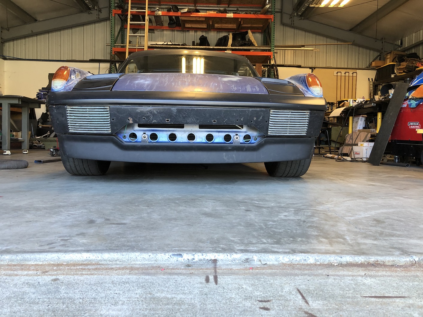 Time to focus on some exterior improvements. Today was the initial fit of the air dam. Then it's the fun job of welding the return back onto the bumper. Once that's done, I'll paint the nose black and work out some screen for the opening.