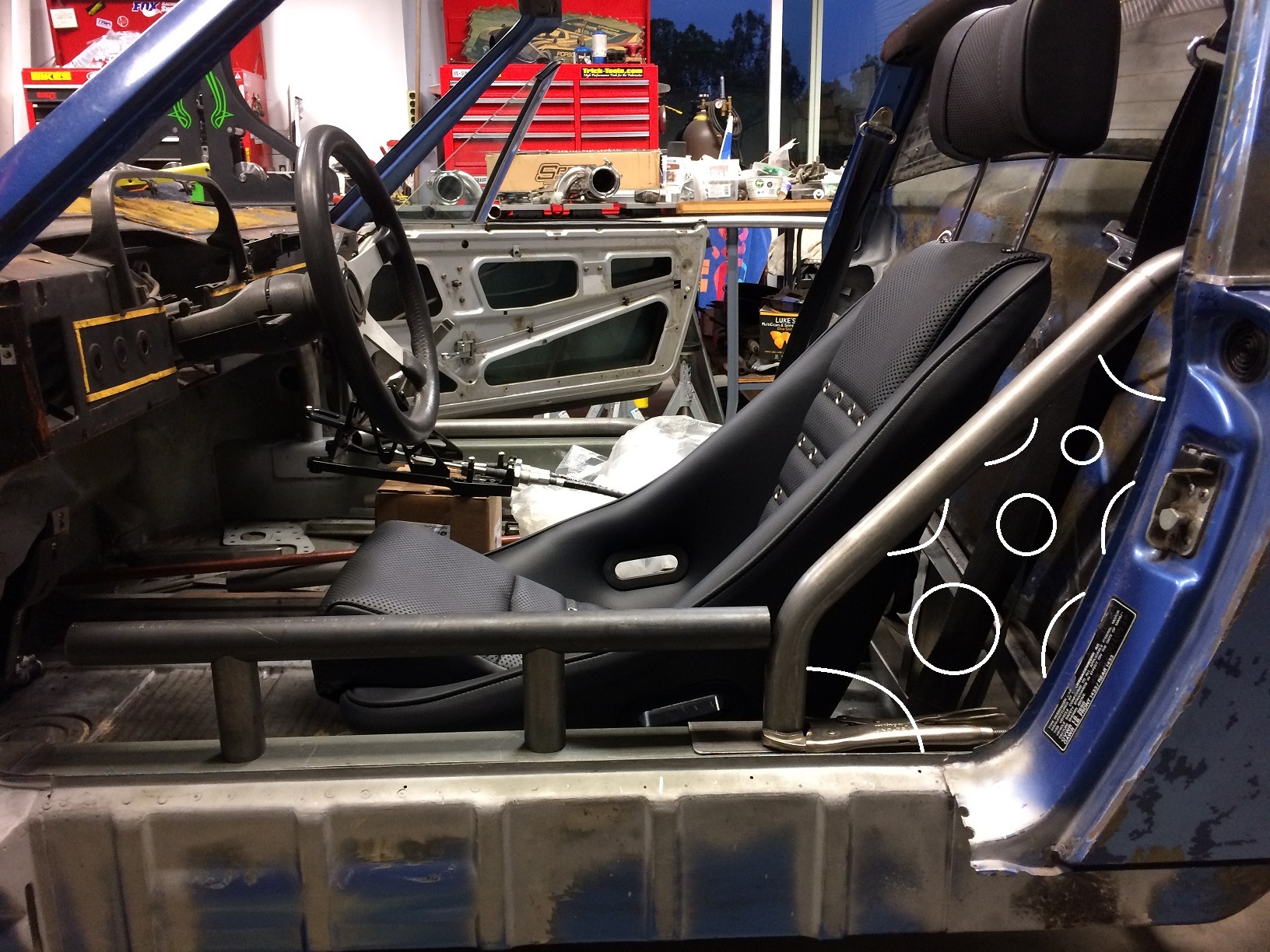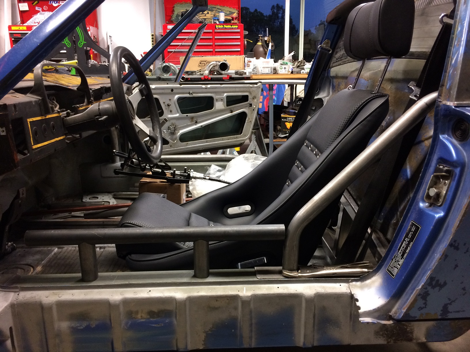 Mock up of the location for the shifter. Feels like I'm making progress again. (IMG:style_emoticons/default/cheer.gif) Looks like the exact same location mine is in! I believe I tilted mine a hair as well, in practice I dont think that was necessary. I like the door bars too, I've been contemplating seriously doing a hidden cage on my car and your door bar design has always been on the back of my mind |