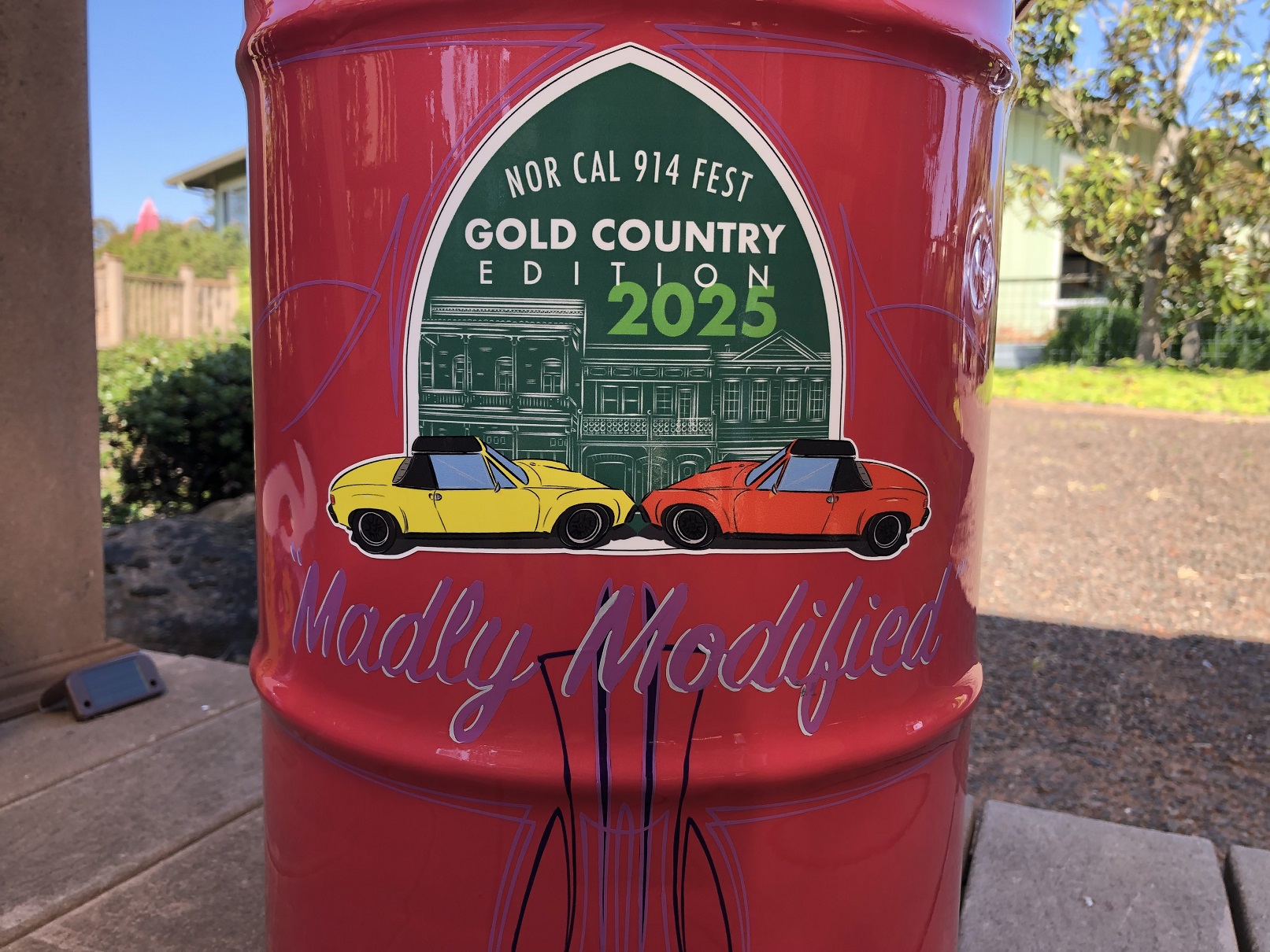 Saturday was a lovely 140 mile drive through the Gold Country, excellent driving conditons, very little traffic. Each meal was more delicious than the last and we ended the day with a fun awards dinner/raffle at Red Bus Brewing in Folsom. My LS car was awarded the "Madly Modified" trophy: An awesome shop garbage can with the event badging and featuring some very cool pinstripe work done by a local artist. It's even raspberry and is all but an exact match to the Ferrari build! (IMG:style_emoticons/default/aktion035.gif) Sunday morning was a Cars & Coffee at Niello Porsche where the 914s were front and center as the "featured" model of the day. Great stuff all around and kudos to the organizers. Really great job. And I'll say: If you have a chance to attend this event next year, don't miss it! Attached thumbnail(s) |