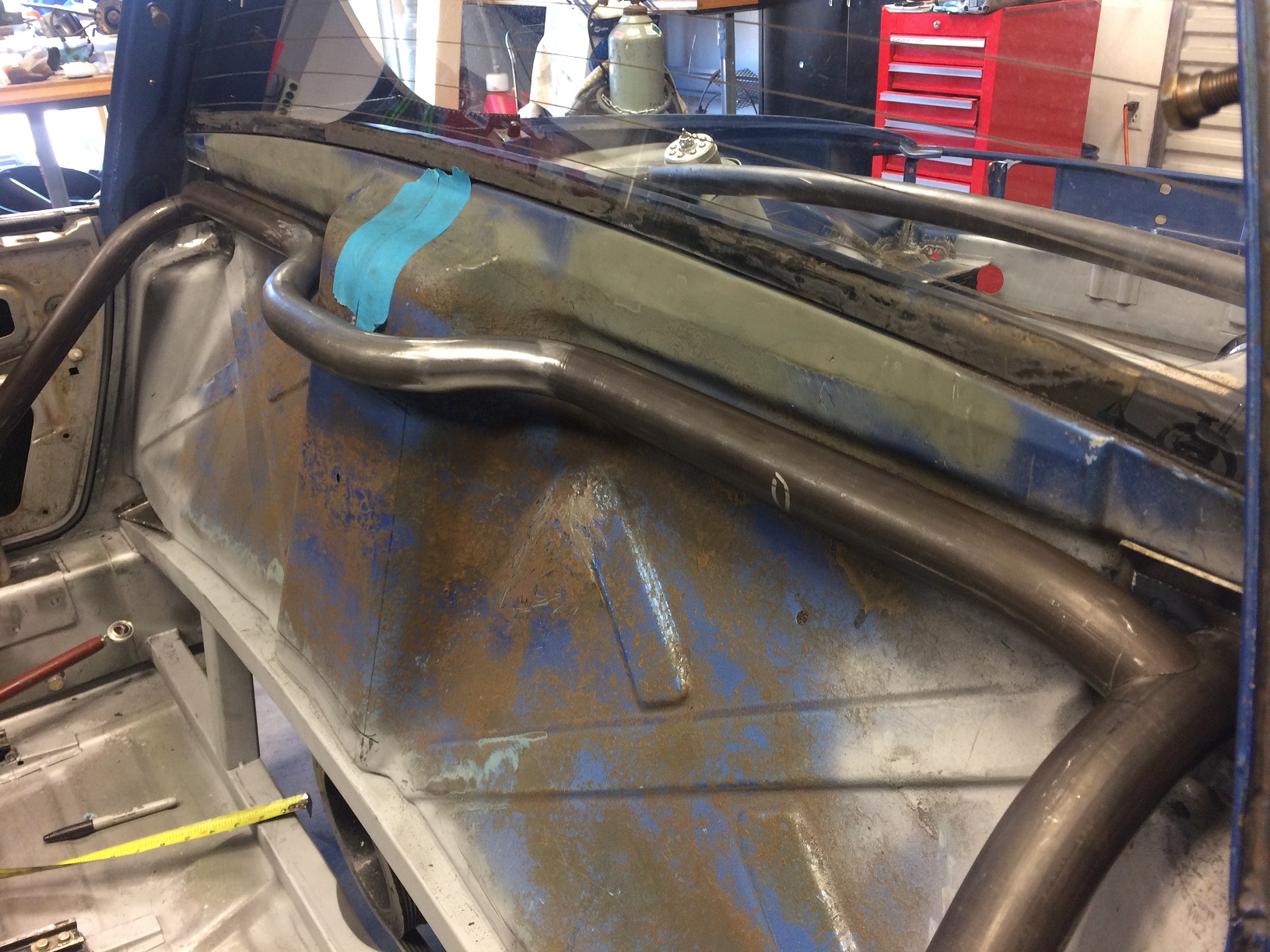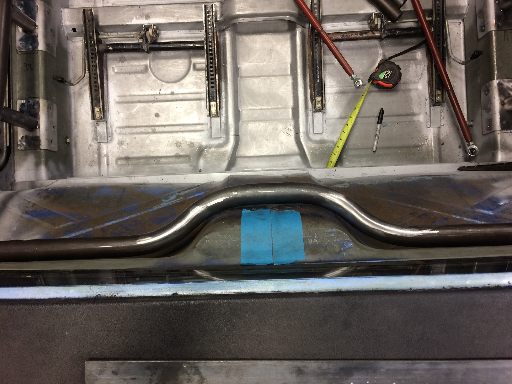 And while I am not yet 100% sure on just how much clearance I'll leave behind the cross bar, here it is, essentially in the final location, complete with the welds disappeared. Once it's all painted, it'll look like it was made from a single piece of tube. Re: the top view: I have a 3" radius die and probably could have gotten the cross bar to better match the fire wall hump but I wanted to honor the "bend radius must be no less than 3x tube diameter", so the 6" radius will have to do. The mistakes I made while fabbing this tube made it seem like it was more work than it really was (once I did it correctly!). In the end, I got the result I wanted, so it's all good. So now it's on to fabrication of the tubes from the front hoop to the front suspension towers! Attached thumbnail(s) |