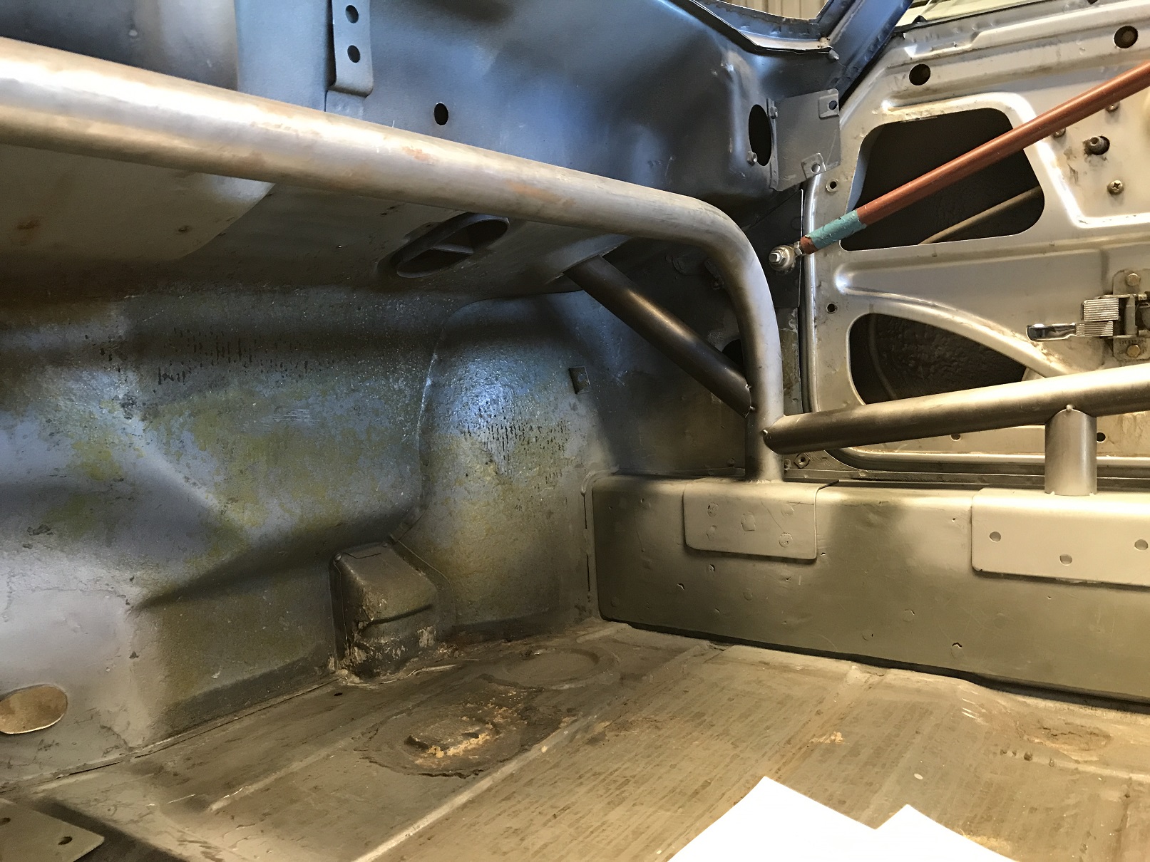 Both front hoop-to-front suspension bars are tacked in.