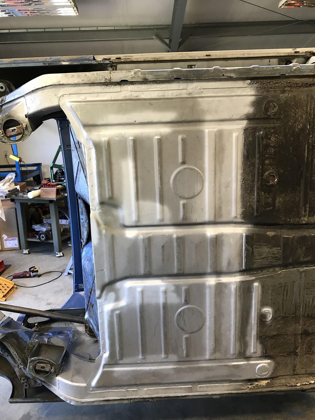 It also made it really easy to finish up the last bits of welding and all the metal finishing on the floor. Turned out quite nicely.