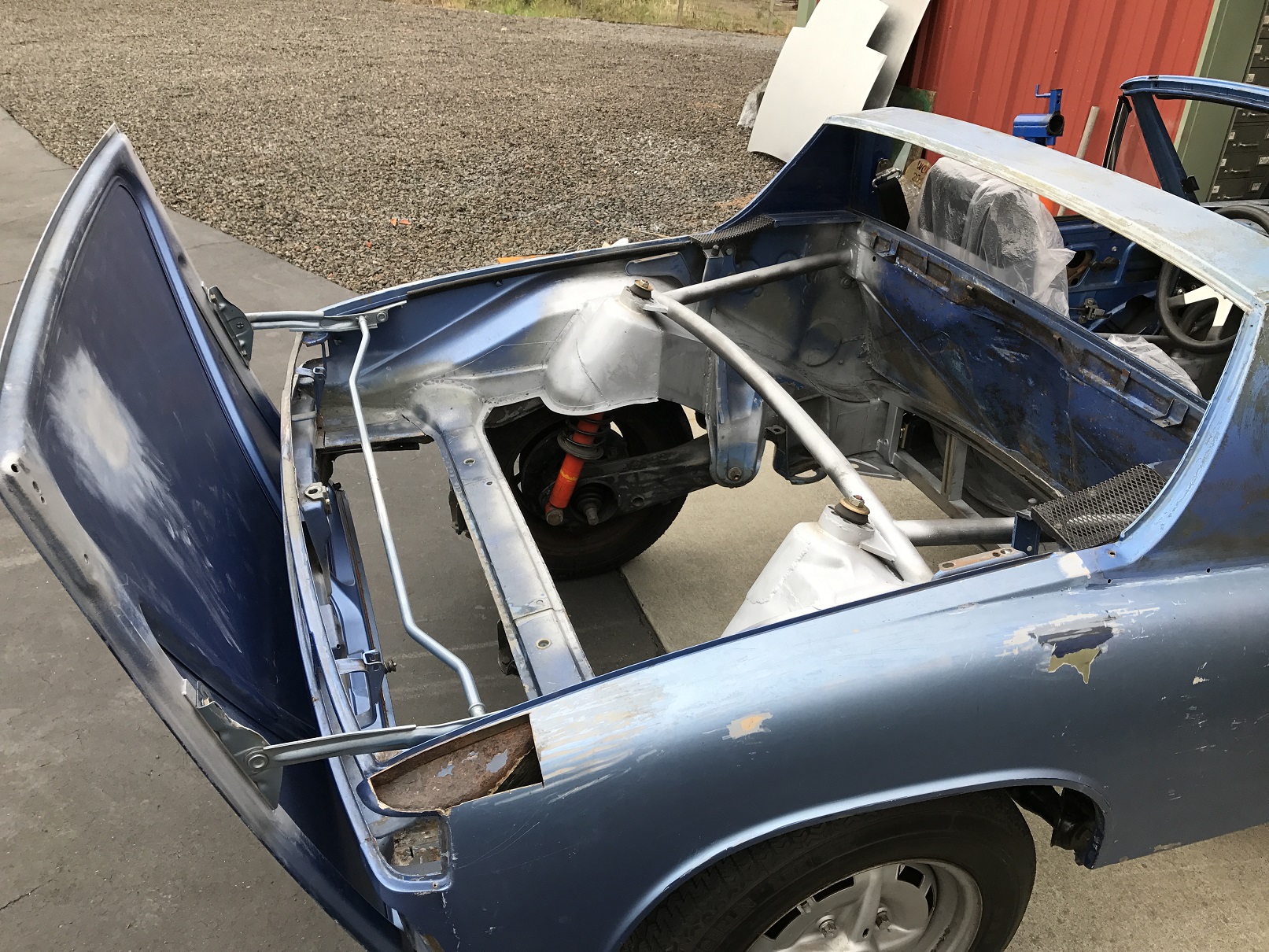 I'm fortunate to be able to work from home and today, I took my lunch hour and got busy prepping the driver side rear suspension tower for finalization of the stiffening components.