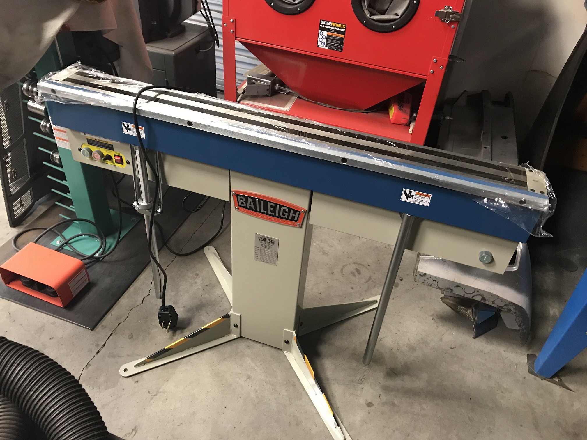 Some of you know I do "yard art", decorative gates and the like, as another hobby/business. That makes it a little easier to justify some of the things I do. One upcoming project I have is to make a large, sheet metal fire place surround. Given that, and all the sheet metal stuff I want to do on the RaceRod, I treated myself to a magnetic brake.