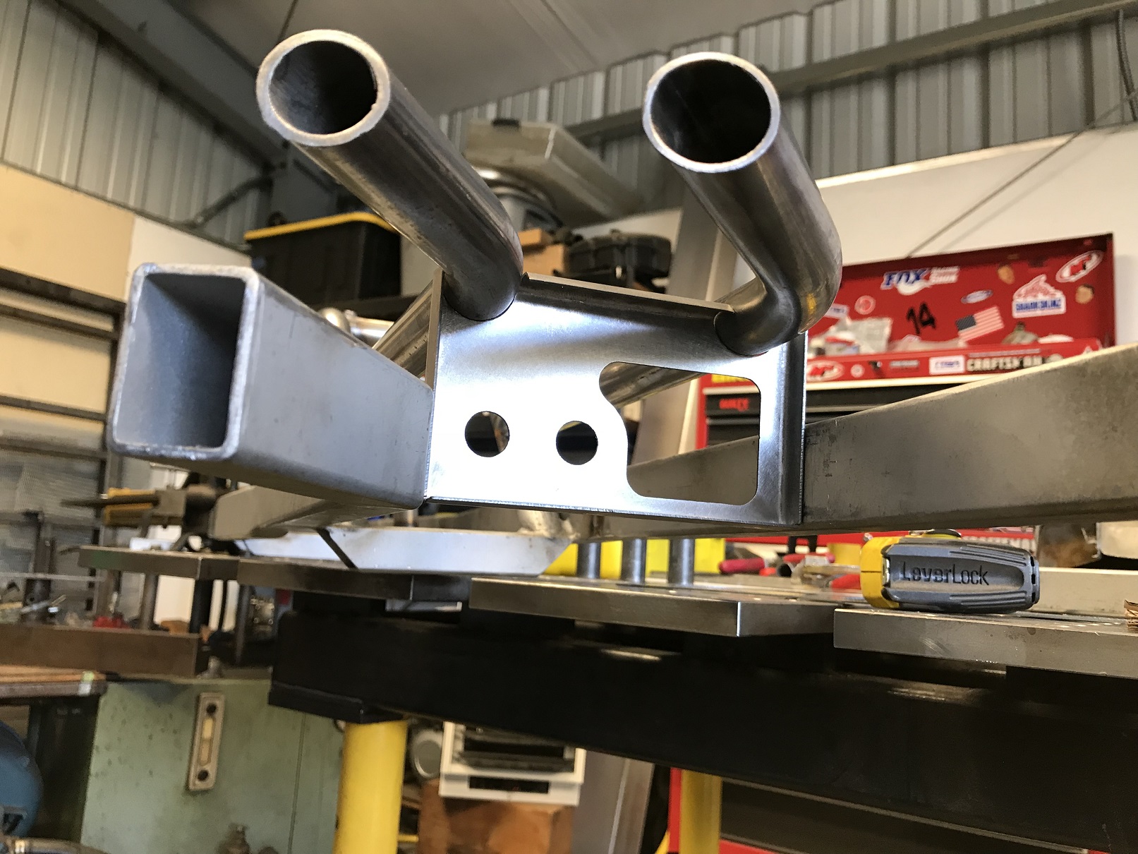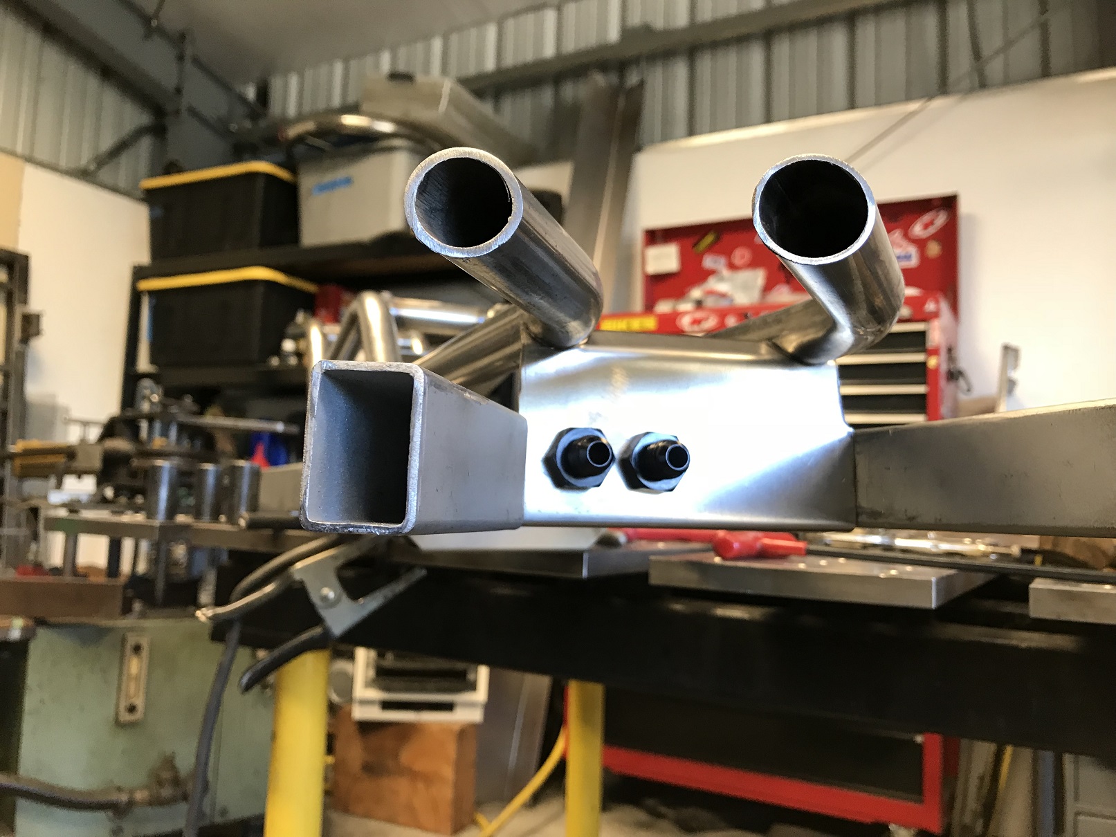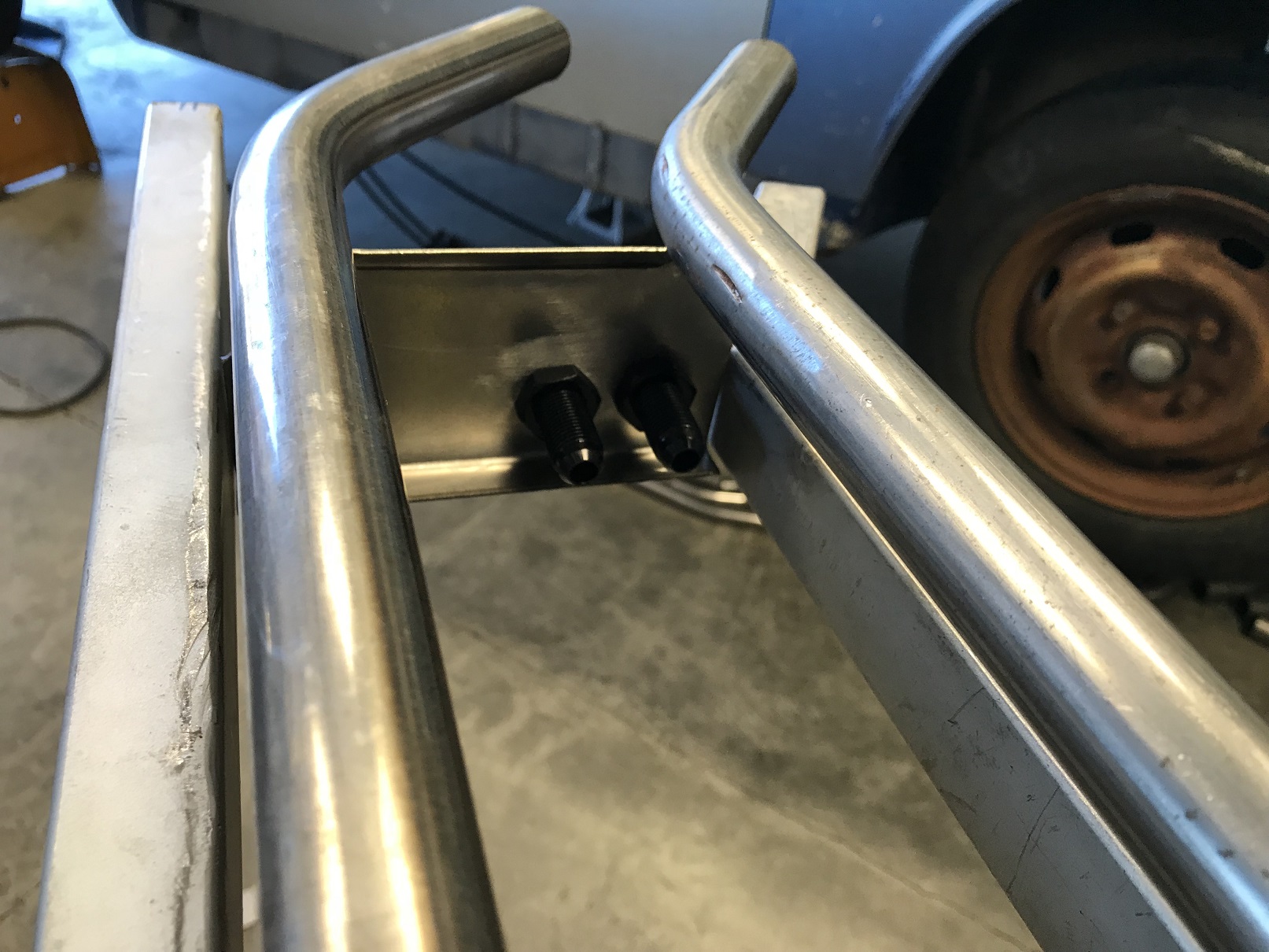 Back to working on the console/tunnel and I got to use the mag bender. I played with it to start the learning process then was able to put it to actual use on fabbing a bulkhead for the fuel lines to facilitate the transition for the hard to soft lines.