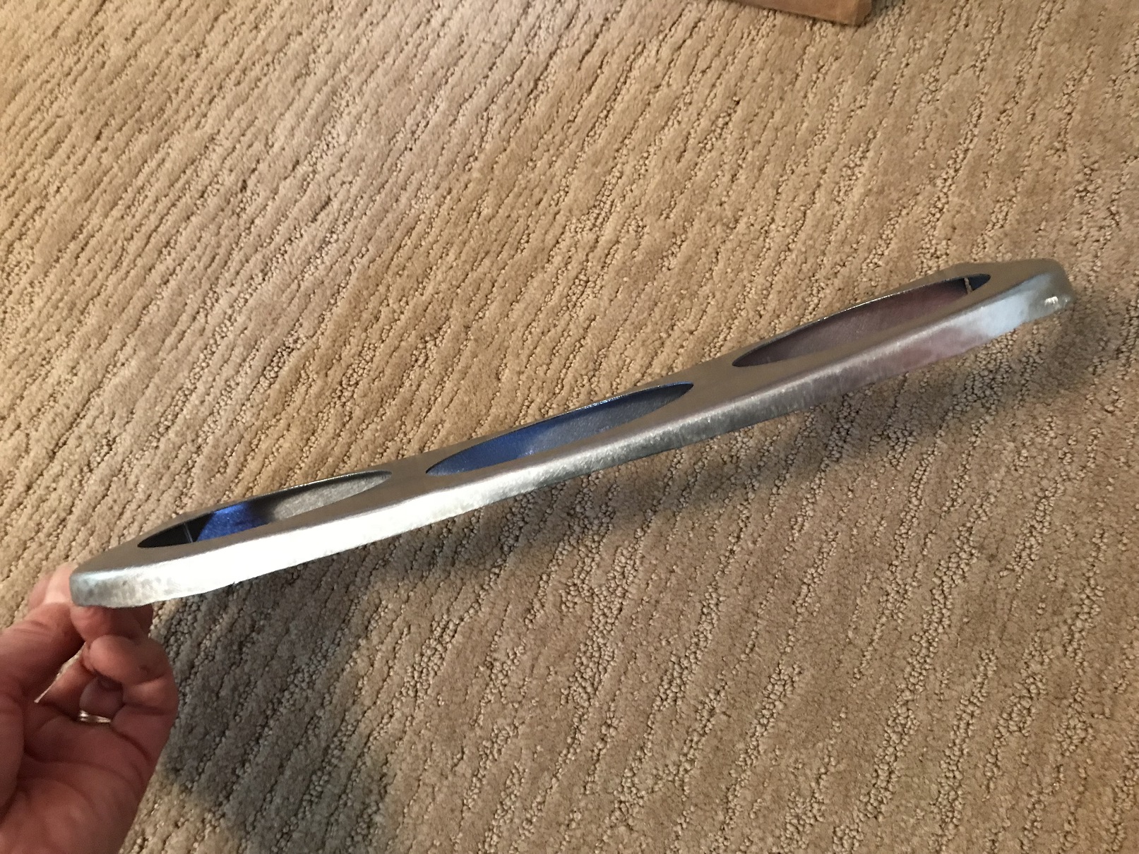 Do the major metal shaping before cutting large holes. With the holes, the part was too flexy for me to get controlled, crisp "around the corner" edges as I was tipping the flange on the bead roller. It was also challenging to hammer and dolly to shrink the corners to vertical once they were tipped in. But a good practice piece! The next one will be better. Attached thumbnail(s) |