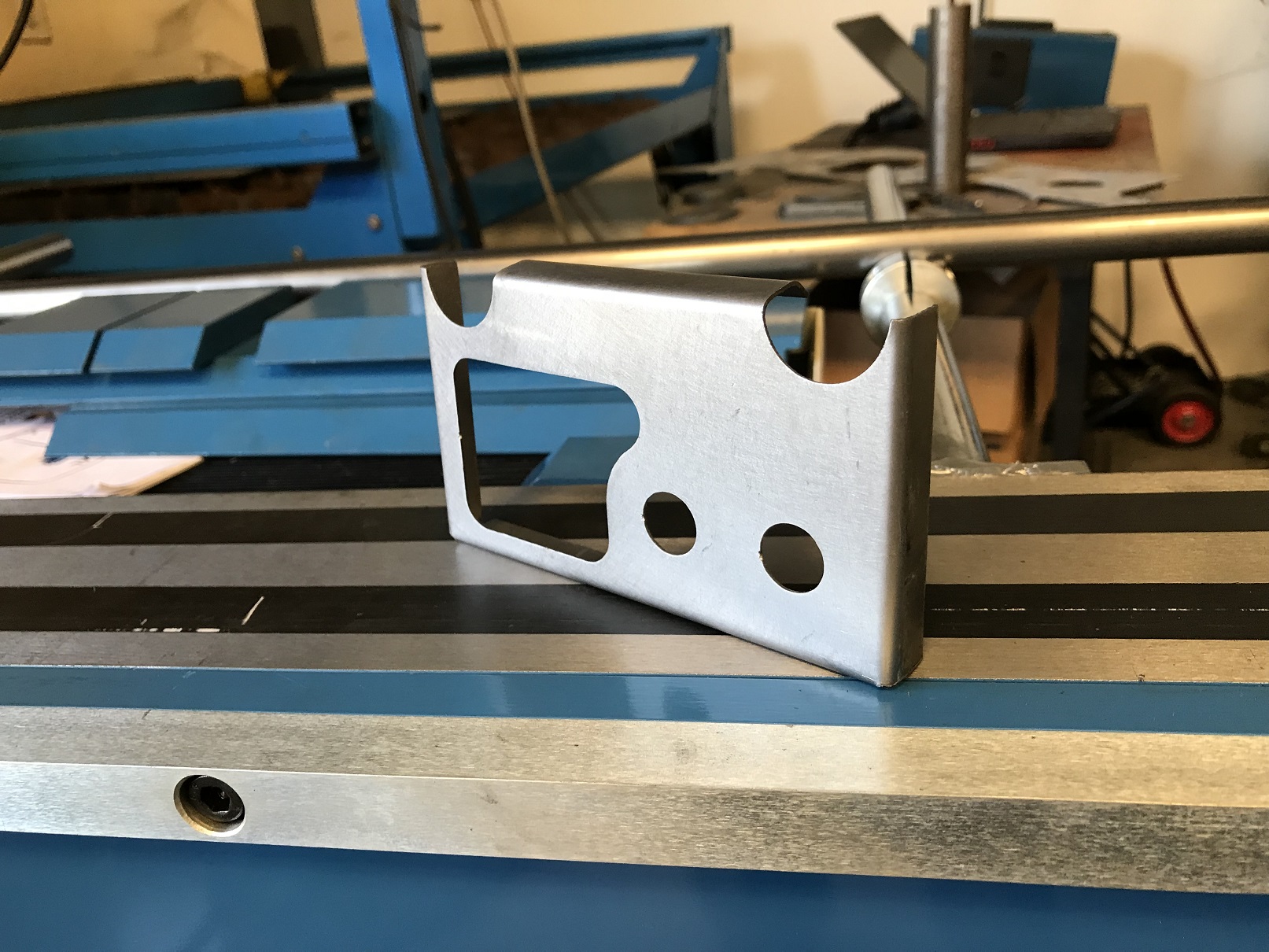 [quote name='tygaboy' date='Jan 26 2018, 02:47 PM' post='2572046'] ...I treated myself to a magnetic brake. [quote name='tygaboy' date='Jan 26 2018, 02:47 PM' post='2572046'] Wow. That's awesome!! I've always wondered how well they work, can't wait to read a "review." What did you get for fingers with it? [/quote] It comes with a full width bar, a full width bar with random slots so you can fold various size box/pans by sliding the work to a location where the existing folds fit, and it has an assortment of various sized fingers from half width on down. What's even cooler is that you can use a tube/pipe instead of the fingers and it'll bend that radius! Here's a vid that shows it in action. The radius bending starts at 4:09: https://www.youtube.com/watch?v=zWvMW1Zxoyc Attached image(s)