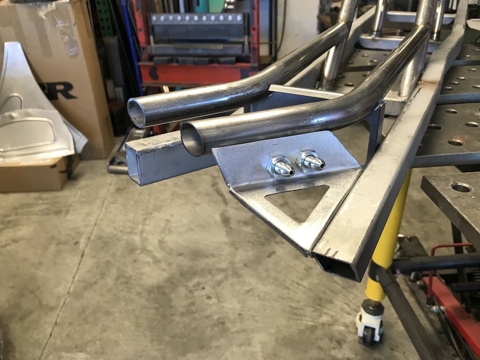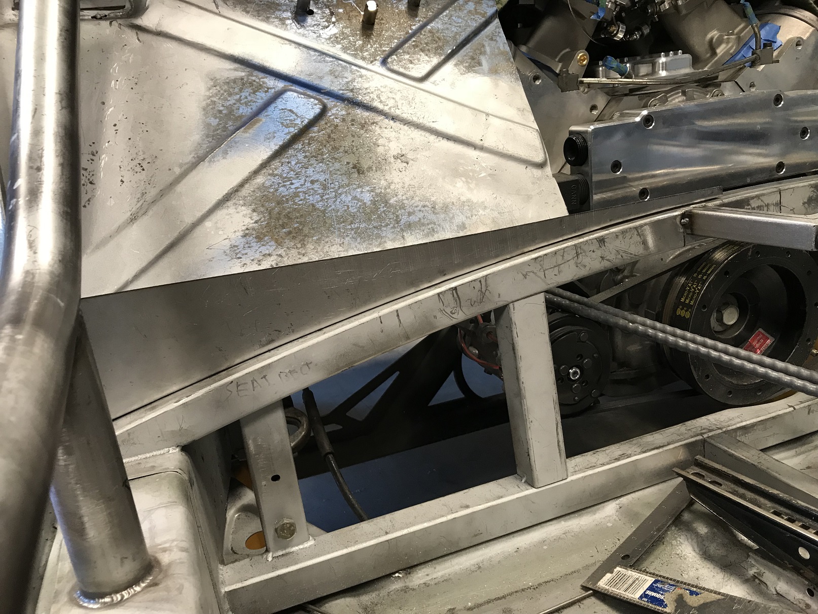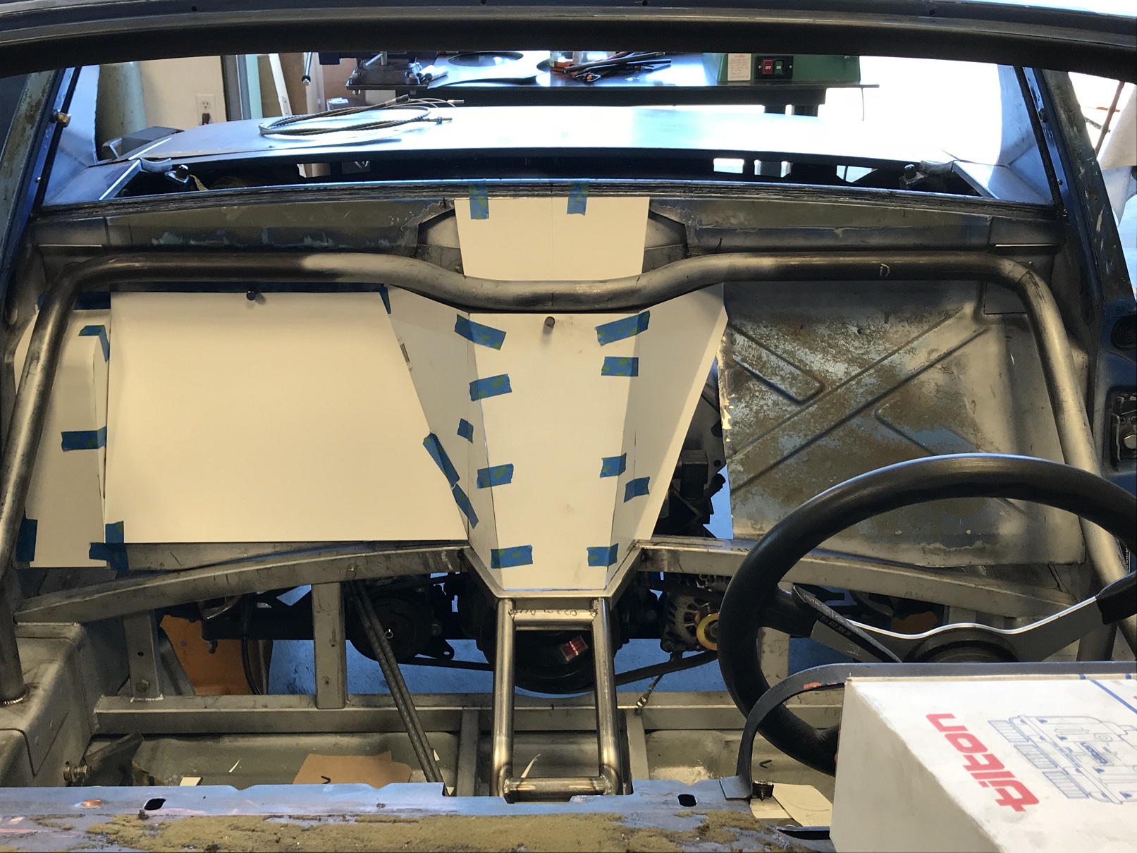 This is the current thinking re: the replacement firewall design. The center section (below the cross bar) will be removable. I get all the clearance I need for fuel lines, etc, it's easy to service things that would otherwise be a real pain to get to.