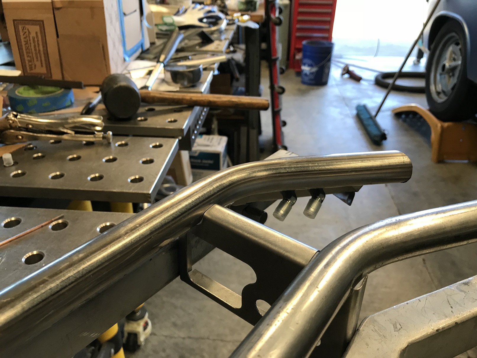 The brake line bulk head was a tricky little bugger. Lots of bends in many directions that required planning to determine which should be bent first, next, etc. Of course I didn't figure that out until I made the first bend... (IMG:style_emoticons/default/dry.gif)
