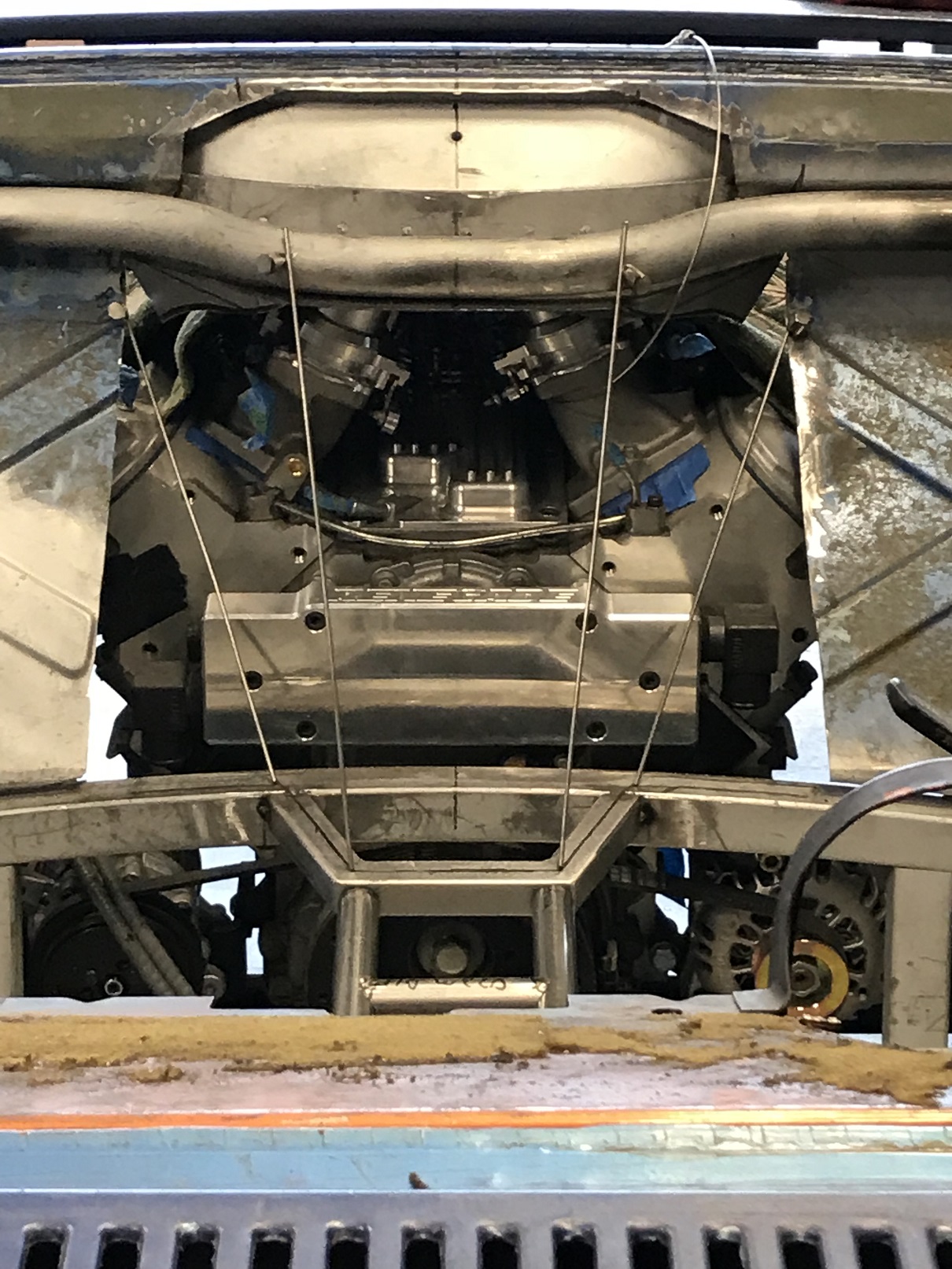 The induction system is off as I need to relocate the throttle cable stop to the opposite end of the valley cover topper as the Borla stacks are designed for a front engine set up. I didn't want to run the throttle cable all the way around the engine! Pics once it's done. It's looking really tidy. Attached thumbnail(s) |