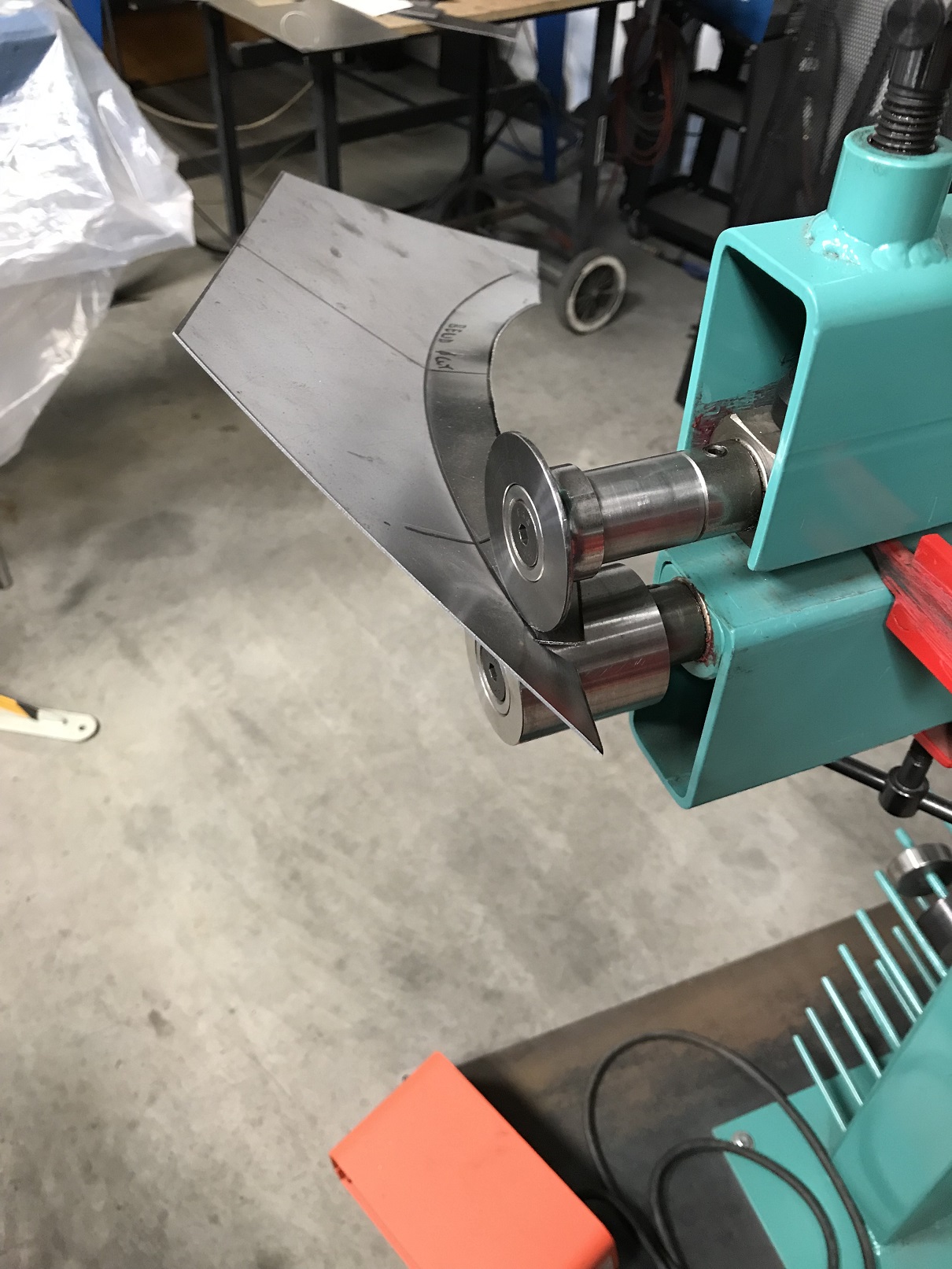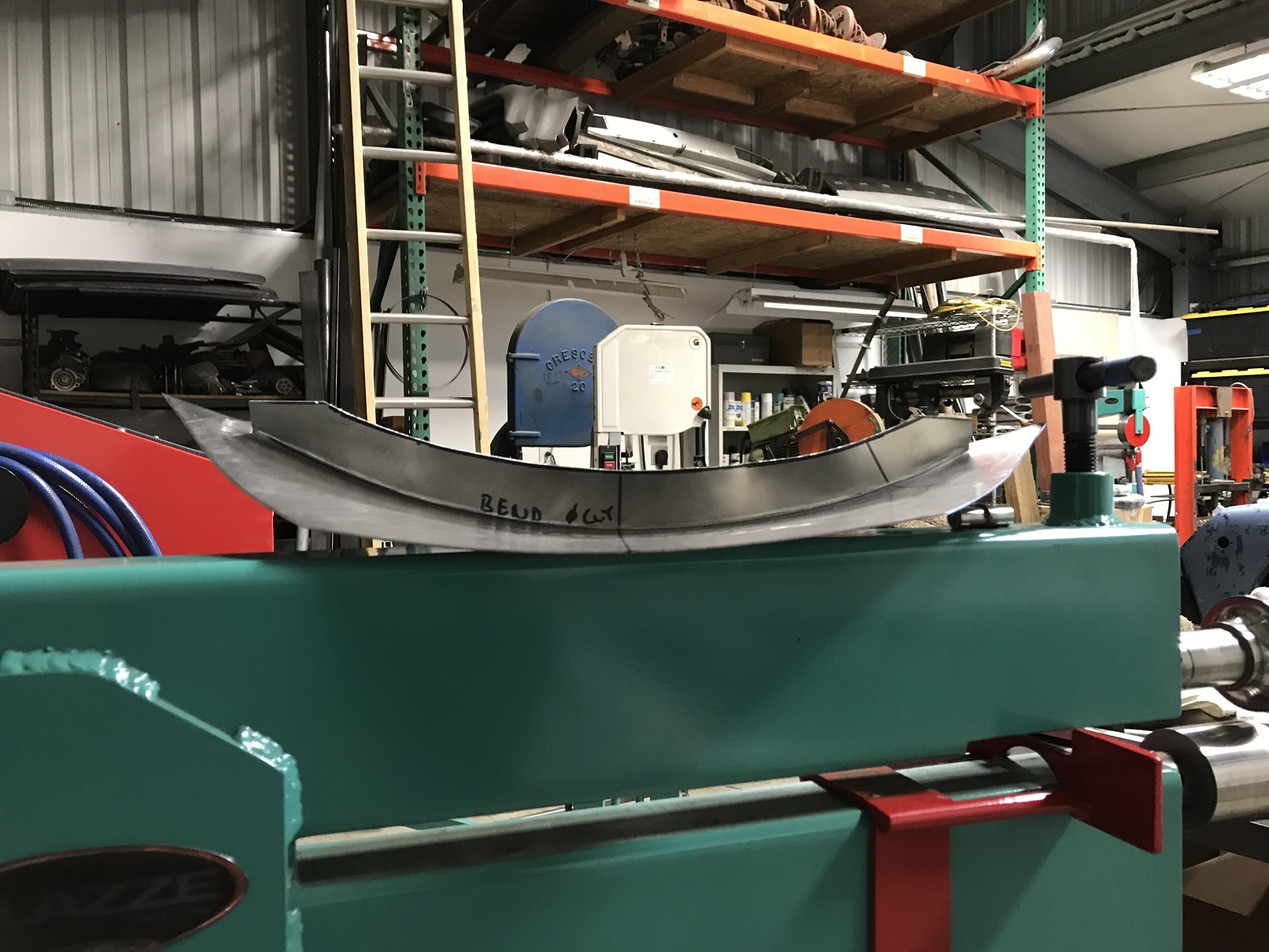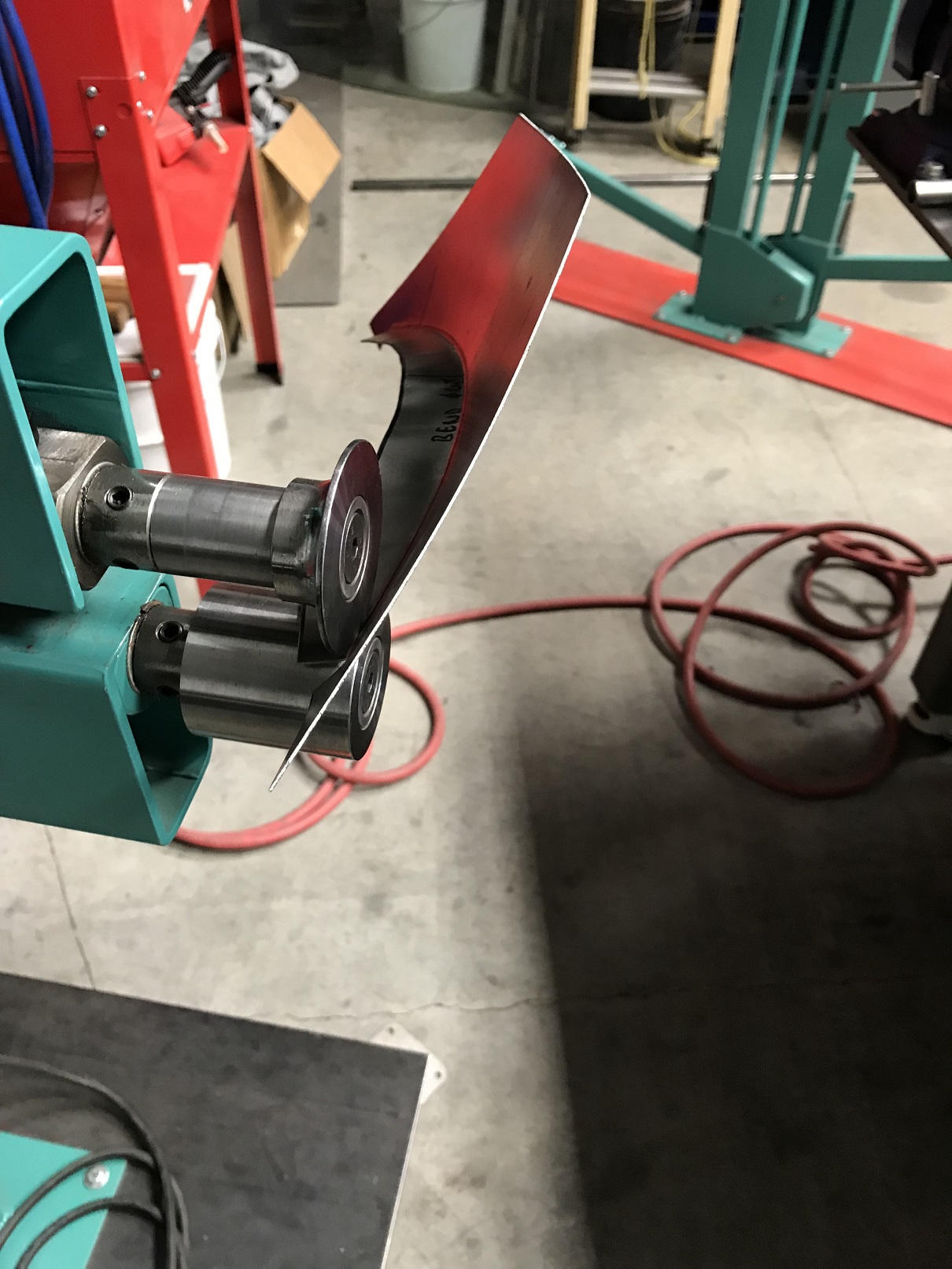 Third pass, almost there. Pretty curvy!I stopped here as I wanted to do some stretching to get it flatter ahead of the next bead rolling operation.