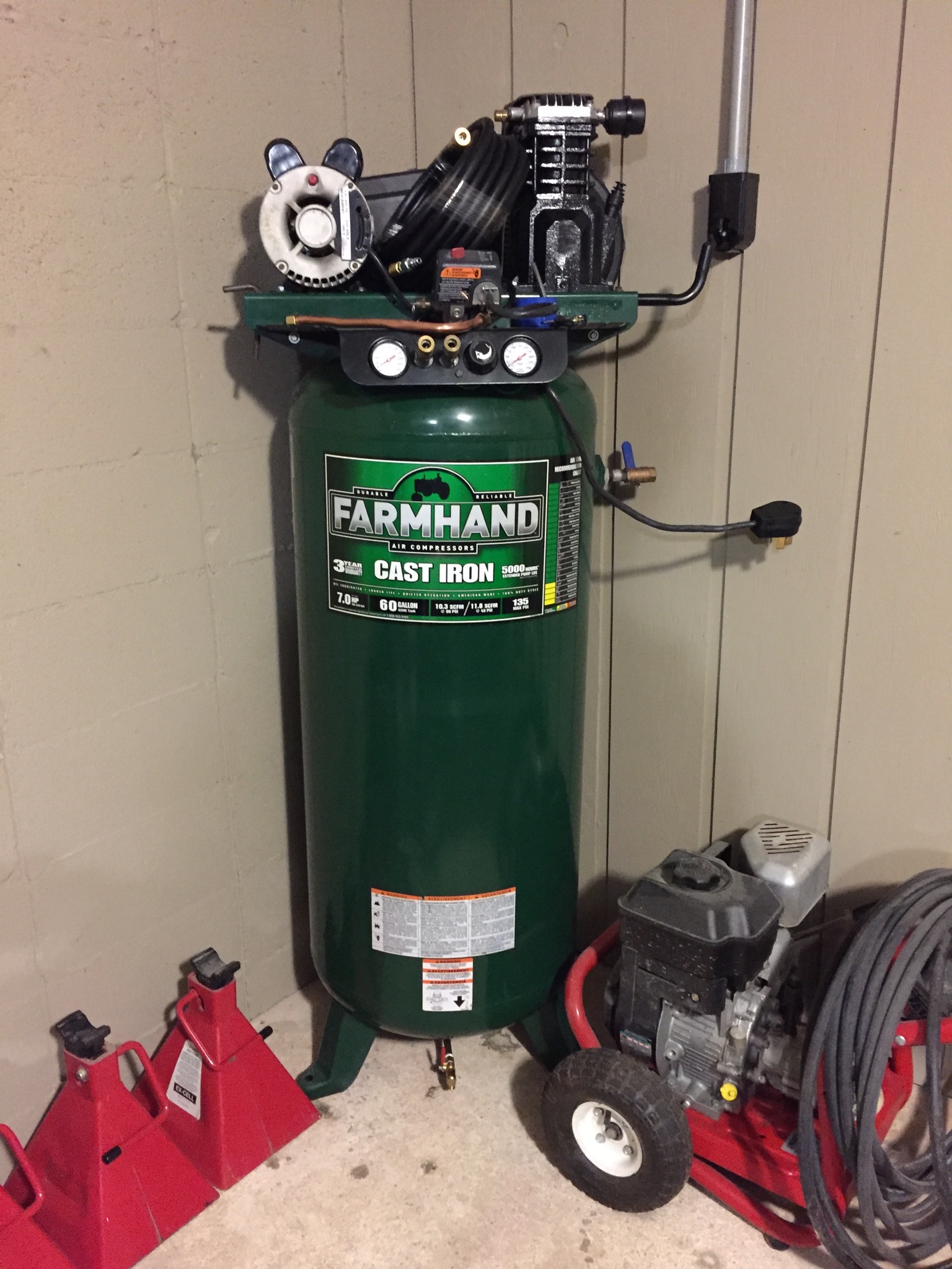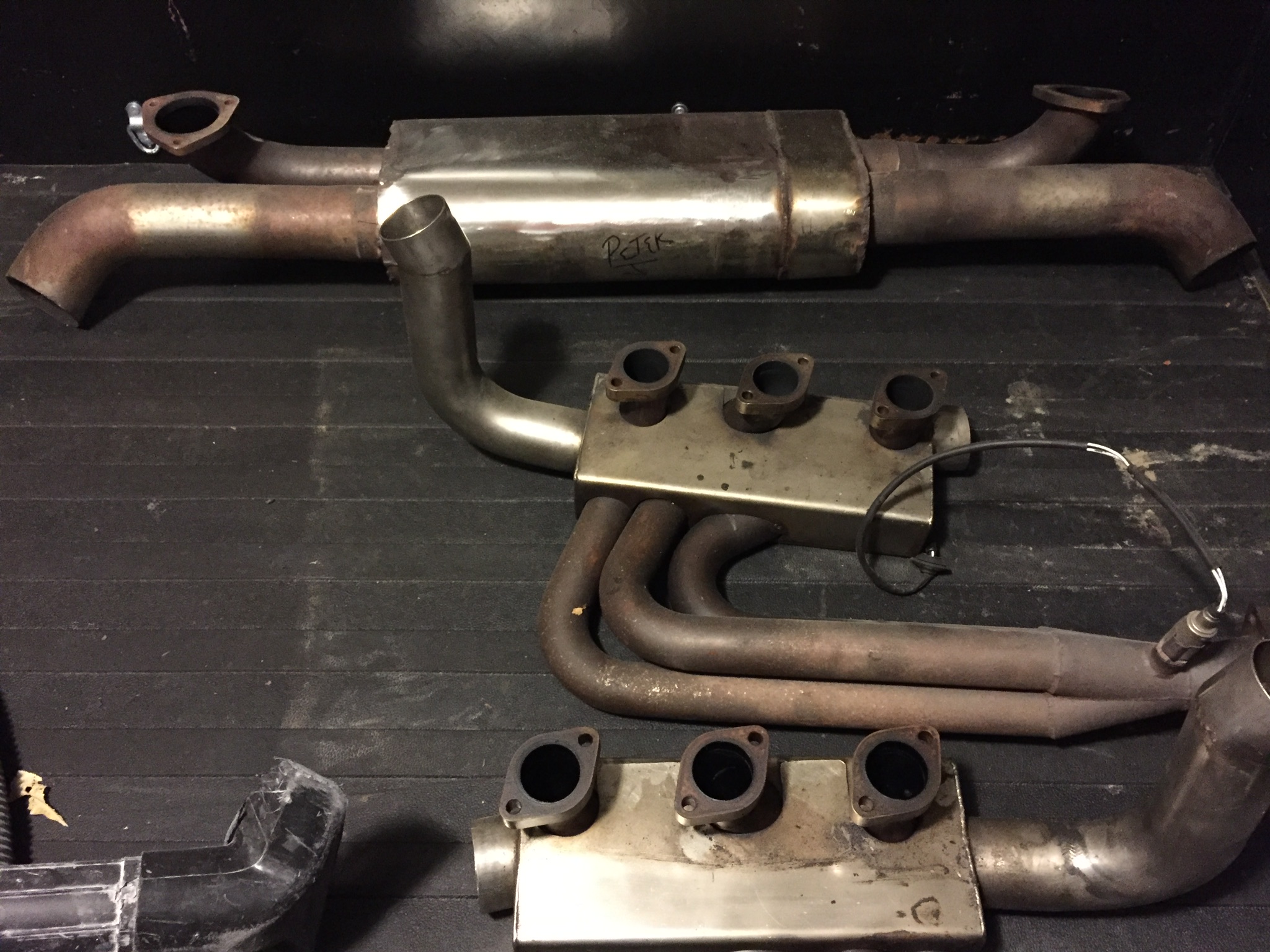 Planning, preparation, anticipation, and more planning have consumed my free time this month. A couple weeks ago my wife asked how I would be able to work in the garage with all of the 914 parts lying around; I jokingly responded saying the parts would be stored in the spare room, to which she said "good idea". After I recovered from the initial shock, I made sure to not discuss the issue any longer and proceeded to comply with her wishes. All parts are now comfortably resting in the house. My second project was to find an air compressor for free or as close to free as possible. With "free" as the goal, I wasn't extremely picky. I found a little used, one stage, 60 gallon unit for $100. With the 220V line and other accessories, I spent around $250, but that's still cheap. I think I'll be able to go get my project's body soon. I need to find a welder now; I'm thinking about a Lincoln, but I don't know anything about welders. Oh yeah, I started cleaning up the BB exhaust that I removed from my 3.2 engine. I'll sell this soon. Attached thumbnail(s) |