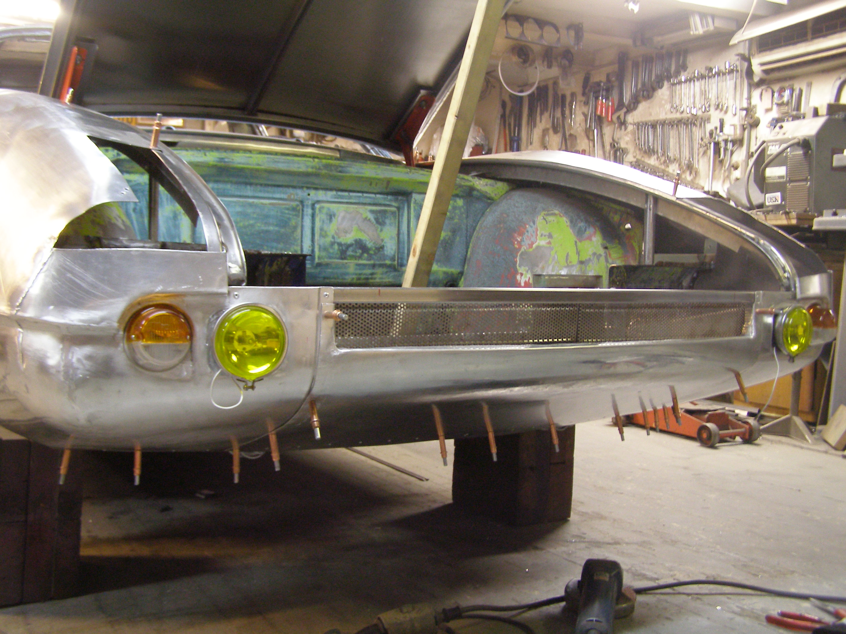 Punked,or not.I made wire screens for the air intakes today and some other small stuff.They are removable from the inside.Working on moving the air scoops closer to the body.They are midsize between the early and late models,in my opinion.The 914 chassis is perfect for a build like this and keeps it Porsche ??Makes it simpler to get license plates on it if I want to drive it... |