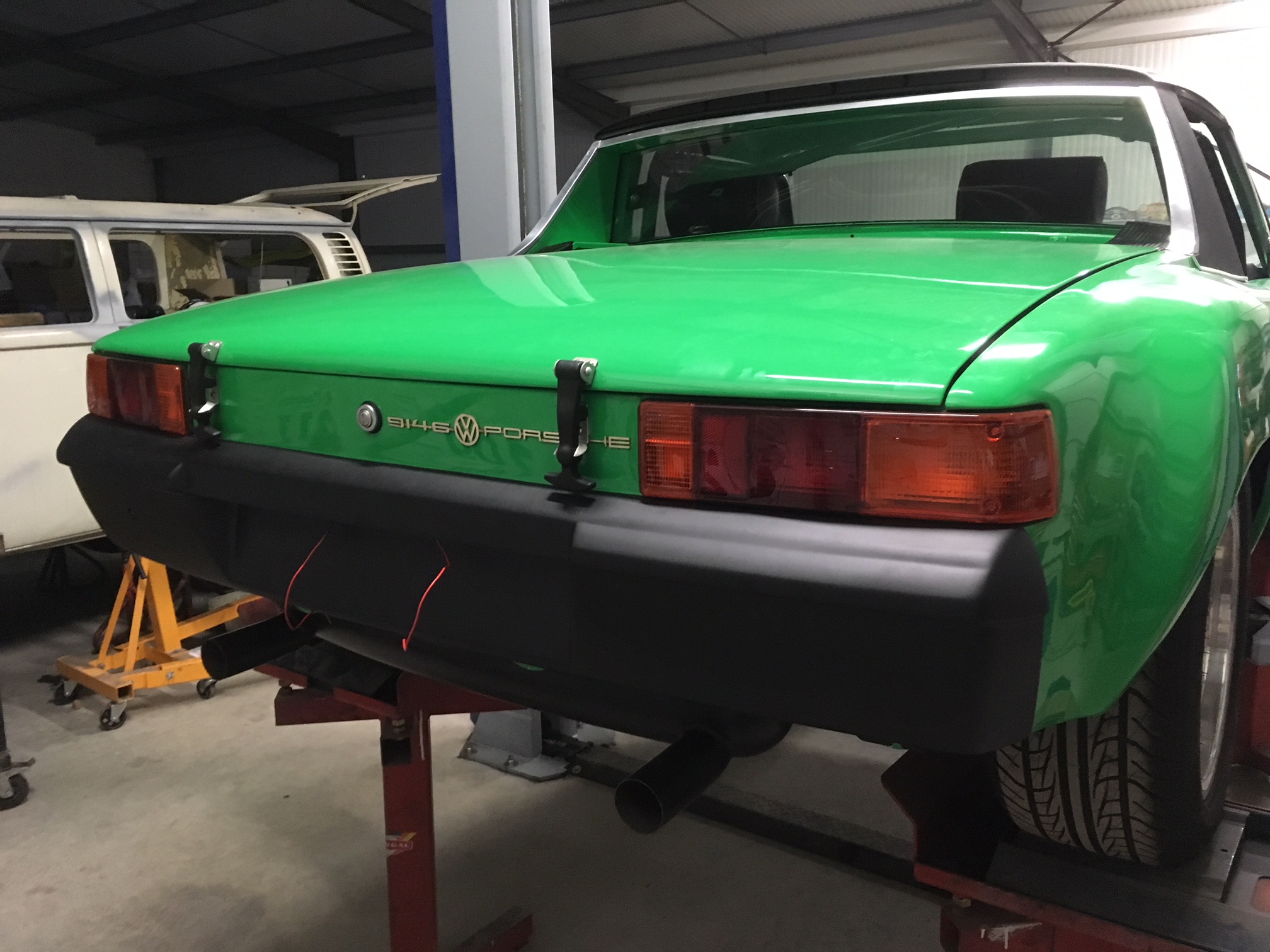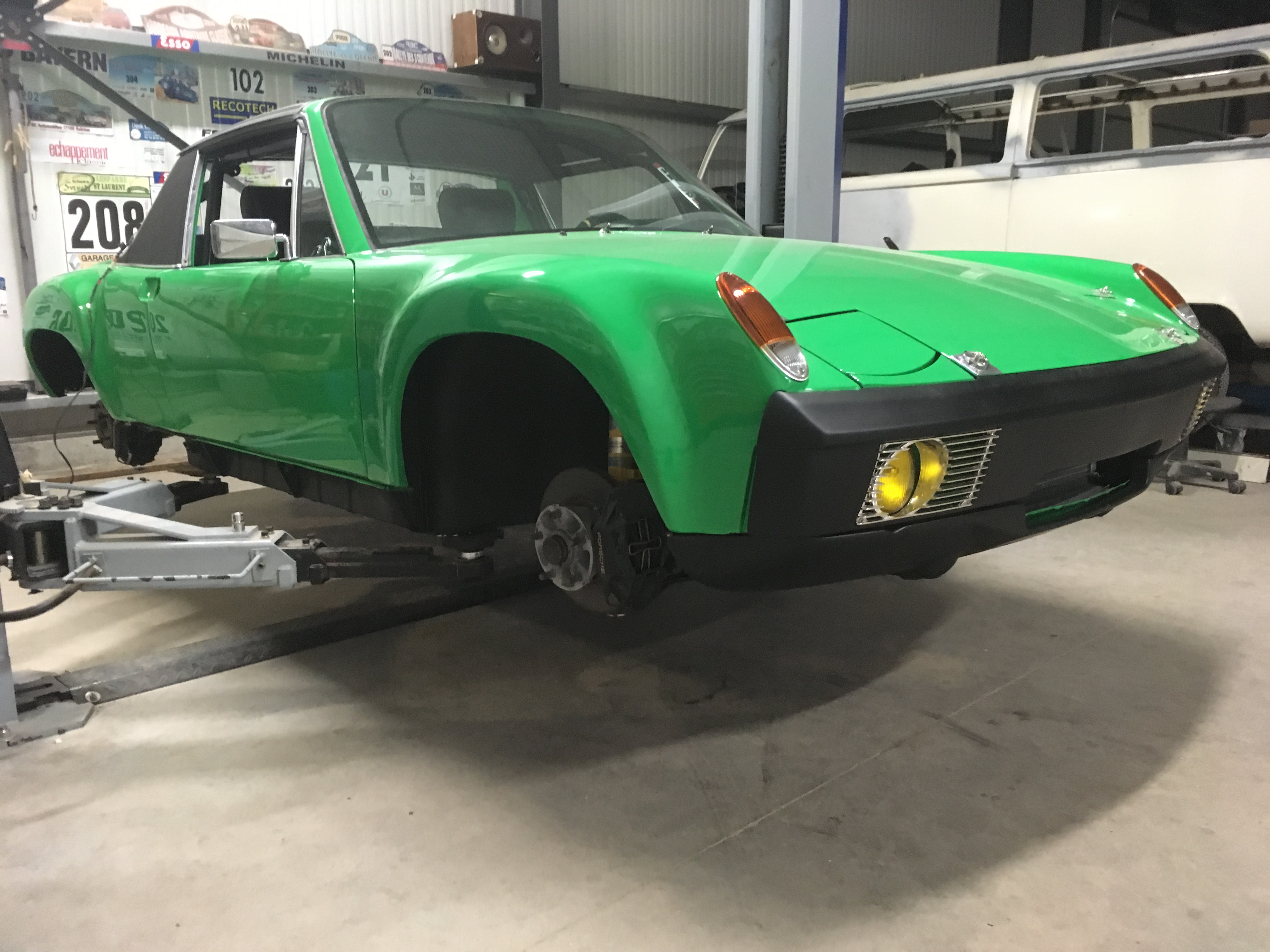 With help from on-line translator Porsche 914-6 with its gray card in my name At the end of restoration 3.0 sc 204cv engine 914 2.0 gearbox Close report Brembo brake 4 pistons master cylinder diameter 23mm Yellow bilstein shock absorber Av Bar 22 mm Silentbloc urethane Turbo links Ar arm reinforced train Urethane silencer blocks Heigo rollbar approved Sandbox body reinforcements laid Wide wings in welded sheet Bumper, sill, fiberglass Electricity new cable all welded lugs New vintage seat Front oil radiator All gasoline oil hoses in goodridge stainless steel braided anodized connection All new screws new joints .... 70000Euro (s) with the finished 3.0 65000Euro (s) to finish remains: Finish assembling the windows in the doors (rear quarter panels), installing the engine hood, painting and mounting the engine. ... read more thank you Erwan |