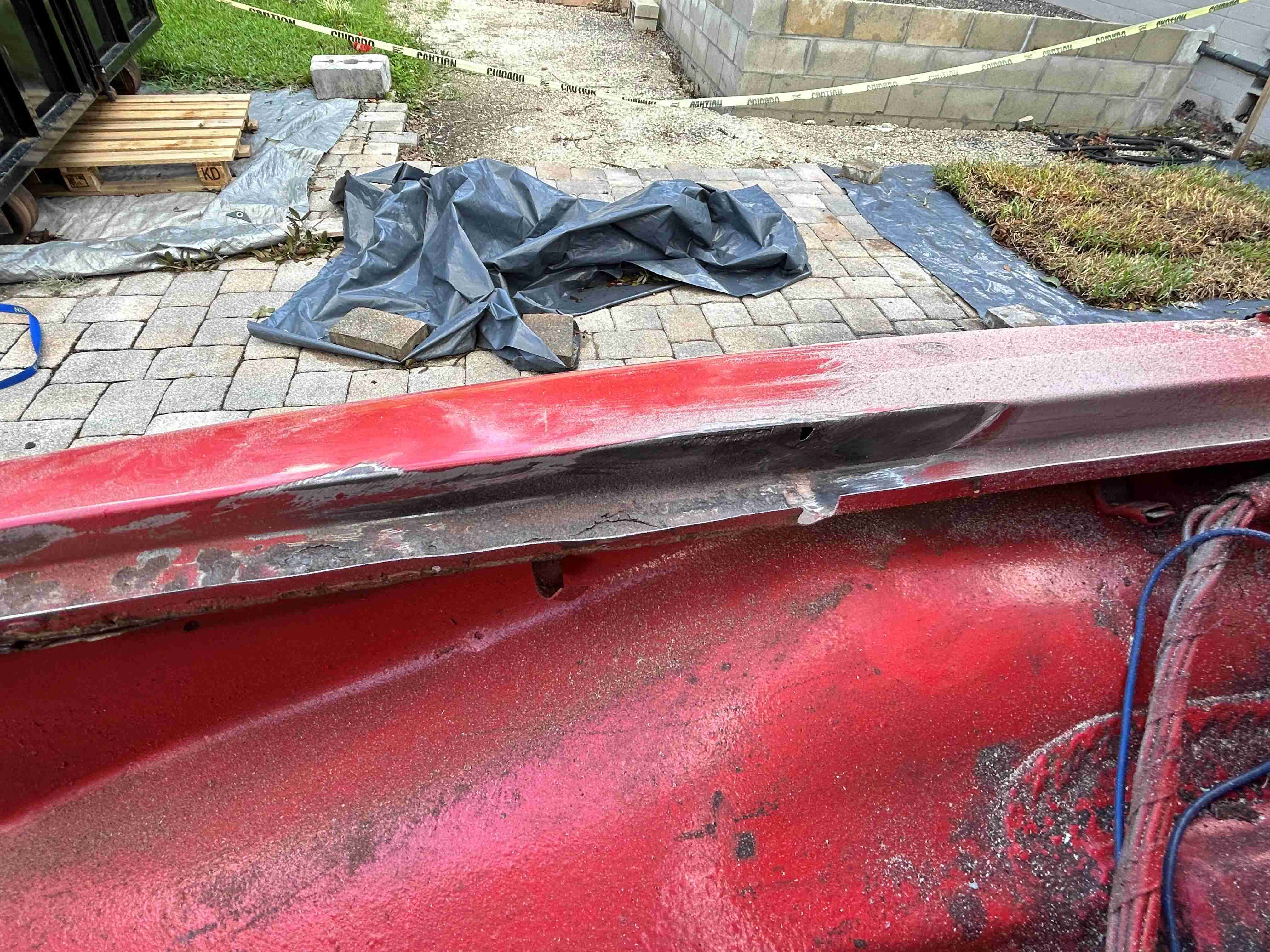 Rear Tow Hook Bracket My recommendation is to sacrifice it and cut it apart rather than trying removal in one piece. ![]() These next photos show the damage in the tail panel right to left where the left side has been bent down. This is even after some judicious whacks with the sledge and 2x4. Note the gap on the top edge between the body and the square. ![]() This area is going to need a lot of attention. (IMG:style_emoticons/default/smash.gif) (IMG:style_emoticons/default/smash.gif) (IMG:style_emoticons/default/smash.gif) |