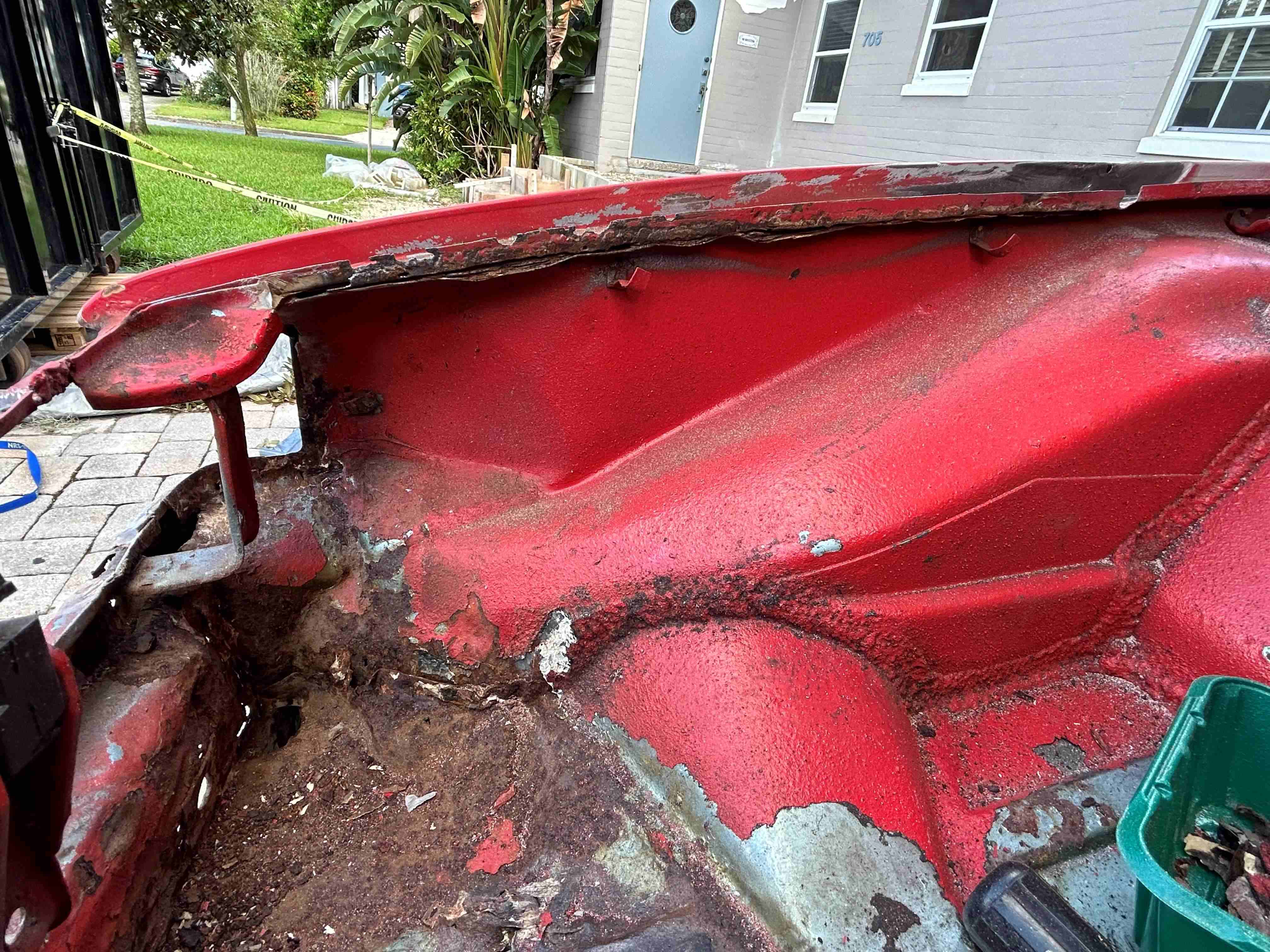 Sean, You might be better off setting aside the trunk floor repair until you get the rear panel sorted out and understand where metal might need to move on that LH inner quarter. I think the RD rear panel is still under $300 and it gives a good basis for piecing together the rear end. Stripping the paint on that entire LH quarter would also help understand what is going on. Paul My concern with this corner repair has been the thought of losing all reference points if the trunk floor, rear panel, and quarter are all removed simultaneously. I was thinking if the trunk floor is replaced and fixed on the good side, not fully welded all around, it helps locate the rear panel and inner quarter on the bad side, to some degree. You are right, the paint and bondo need to be fully stripped from the bad quarter panel to get a better assessment, and part of the reason why I was trying to understand how that top corner came together. Seeing what folks like you and Fred are doing provides a lot of inspiration. |