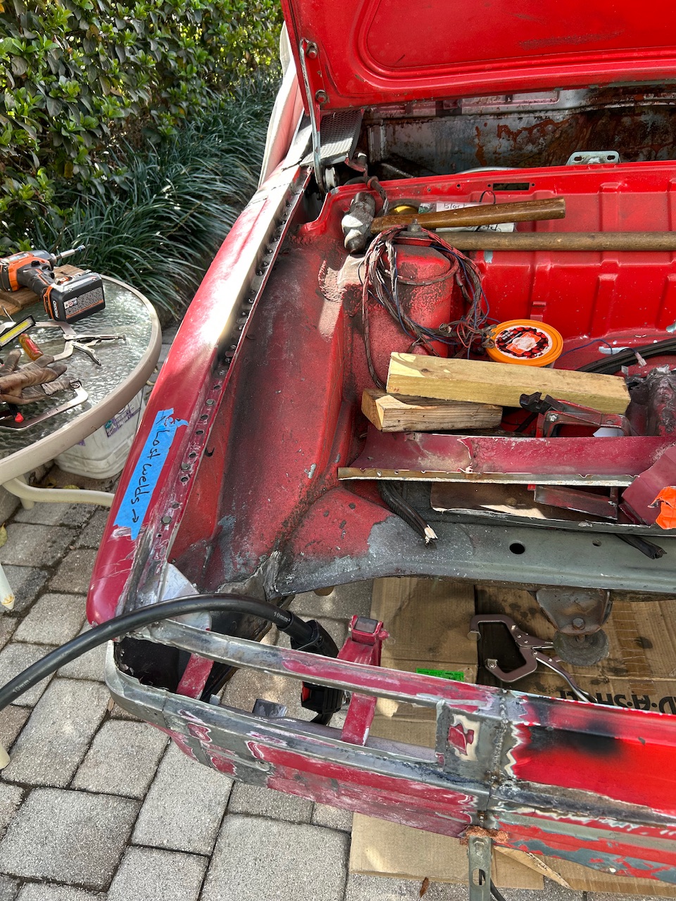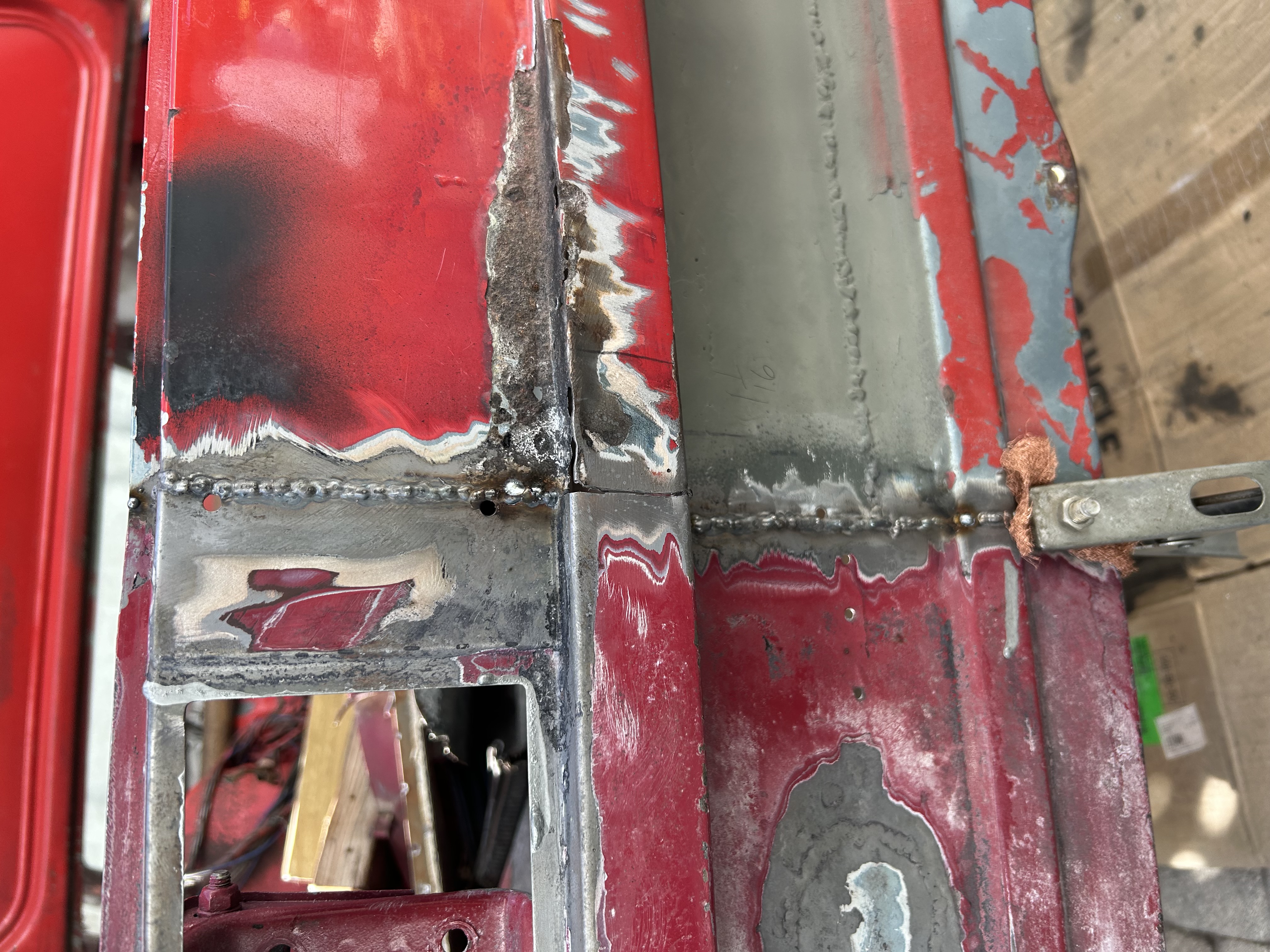 Vertical weld on the quarter panel - check. Splicing of the tail panel- check. Welds along the rain channel - half check. There is an obvious rust spot needing repair in the original tail panel but I don’t think it will be too bad. Not so obvious to me anyway is that it appears my original quarters have been pulled out ever so slightly. I noticed this because the donor is very straight along the arch and the lip of the two pieces will some working to fit up. The lines look okay but it will need shaping. After that I’ll get a profile off the good side to check it against the donor. Pleased to have gotten this far with the install this weekend. Cheers |