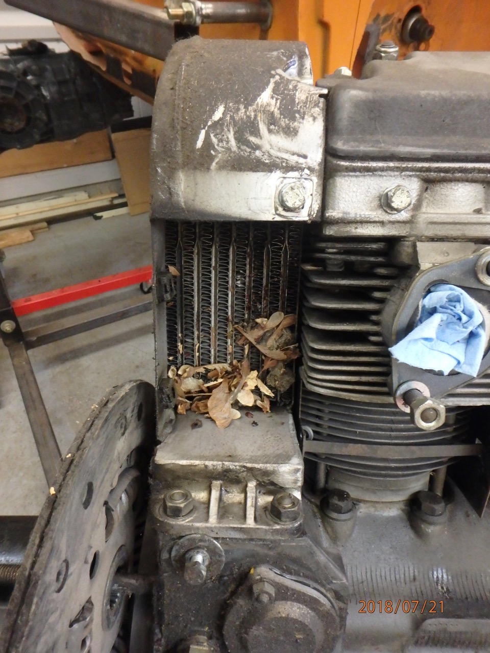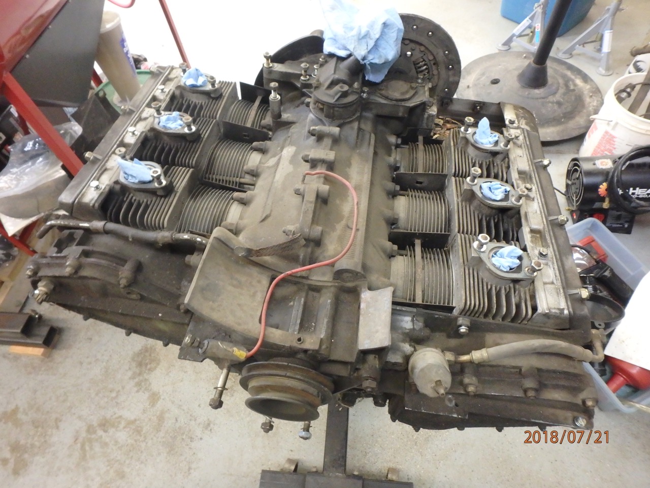 First up new oil tank. Yes thank you Ben. I do have two factory original -6 tanks that will stay on the shelf. I see no need to spend time to clean restore, patch or what ever else I have to do to make them right. Pete and I traded some parts a while back, and I got this supper nice muffler off of him. Again have the factory stock part, but this one will work nicely. Just needs a bit of cleanup, and has a nice chrome tip Chris came through again with these nice bearing retainers. 108 transmission drive flanges and bolts. Bolts in backwards so I don't loose them Finally got the 2.7L 911 engine home, had to unload it out of the truck. I really need a gantry, normally I have a tractor around with a front end loader for this stuff. So I had to make due with what I had. Used my Warn winch to pull it off the truck. Several tense moments and it was out and flat on the lift I got the engine uncrated, torn down to a long block and on the stand. Need to spend some time cleaning it up. Looks good, add some oil, spin it around and see if it still turns over. Fingers crossed. Only thing out of place was these. Maple seeds seem to get into everything. |