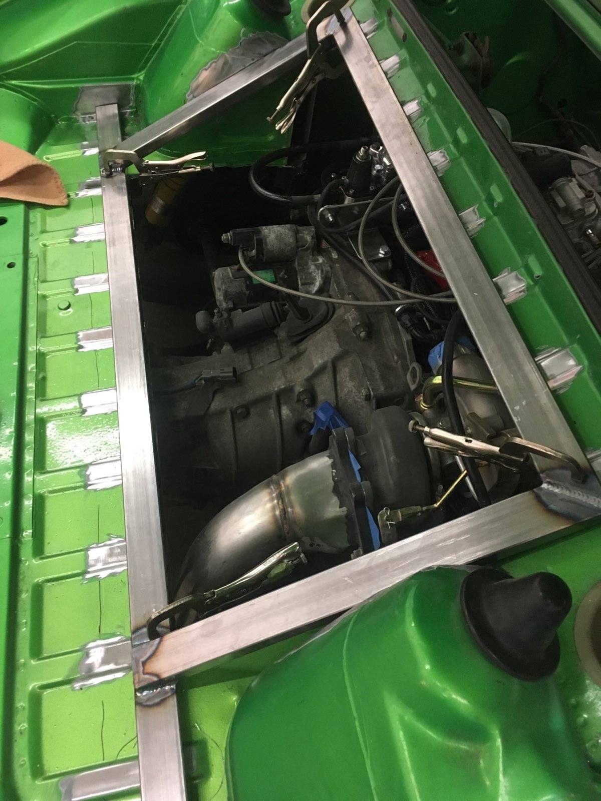 Motor is back in. Next up getting the exhaust built. I also need to build a cap for the hole in my trunk. Planning to tie in my rear suspension towers with a cross bar. Then having my cap possible attach to it.